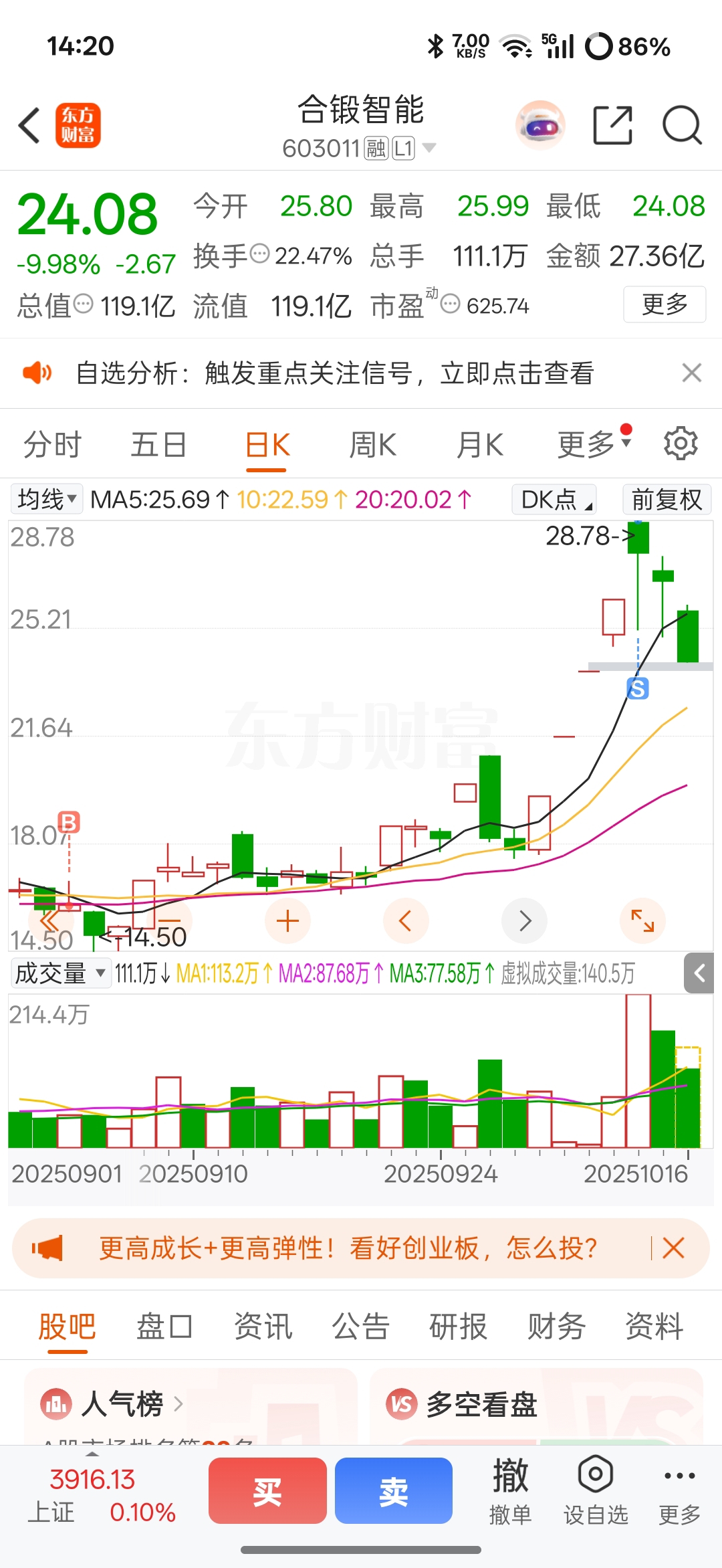 $合锻智能(SH603011)$ 还好跑的早,不过这几天在别的地方也不好受