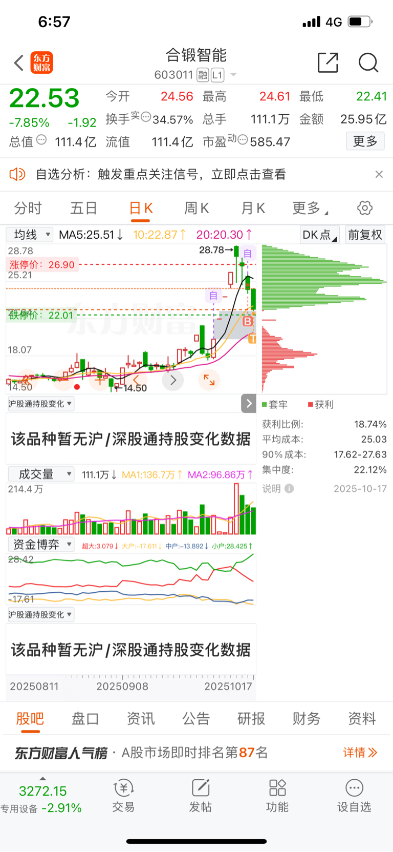$合锻智能(SH603011)$ 这个位置看反个弹双头,除非能以涨停方式打上去,但是没有消息面大利好基本不太现实