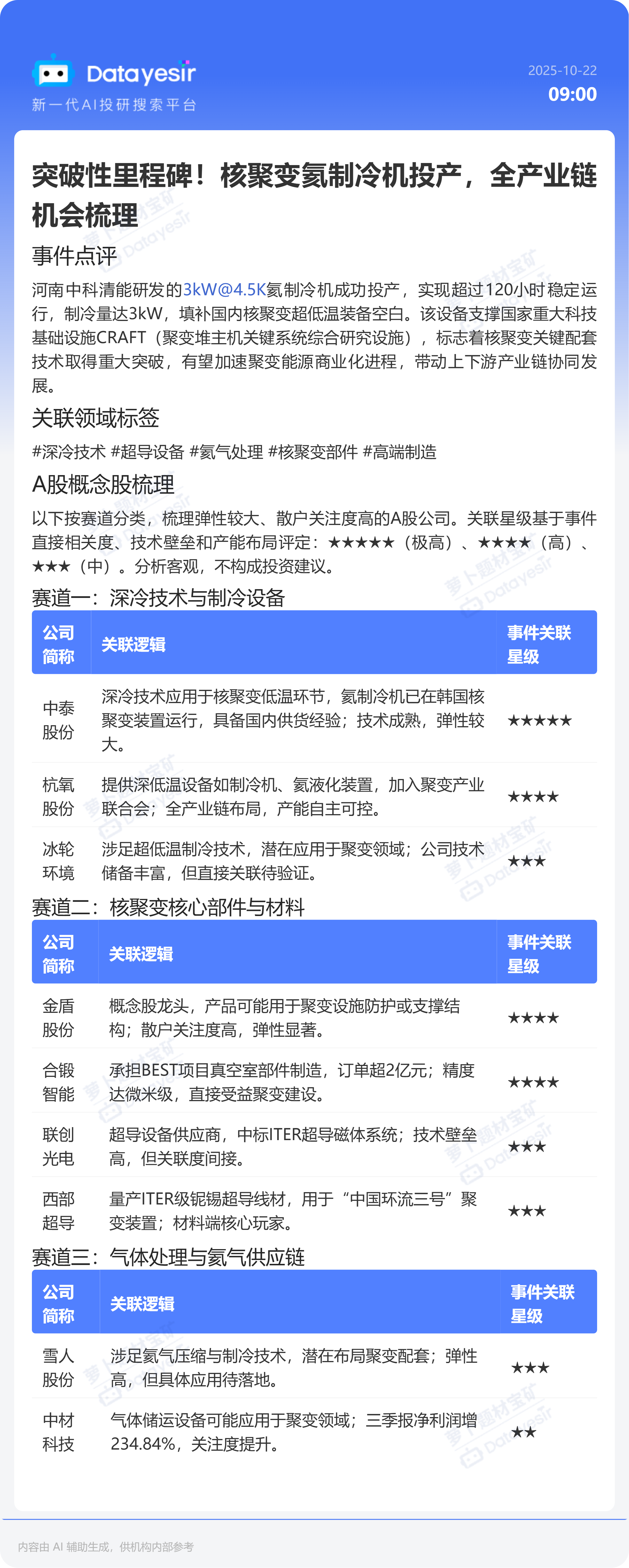突破性里程碑!核聚变氦制冷机投产,全产业链机会梳理