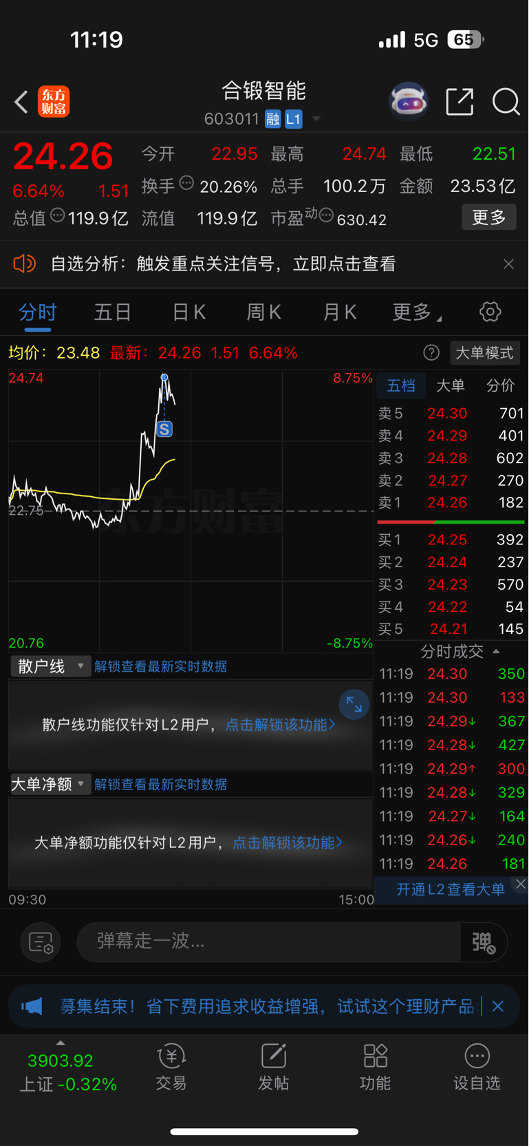 $合锻智能(SH603011)$ 走了,留下的发财吧