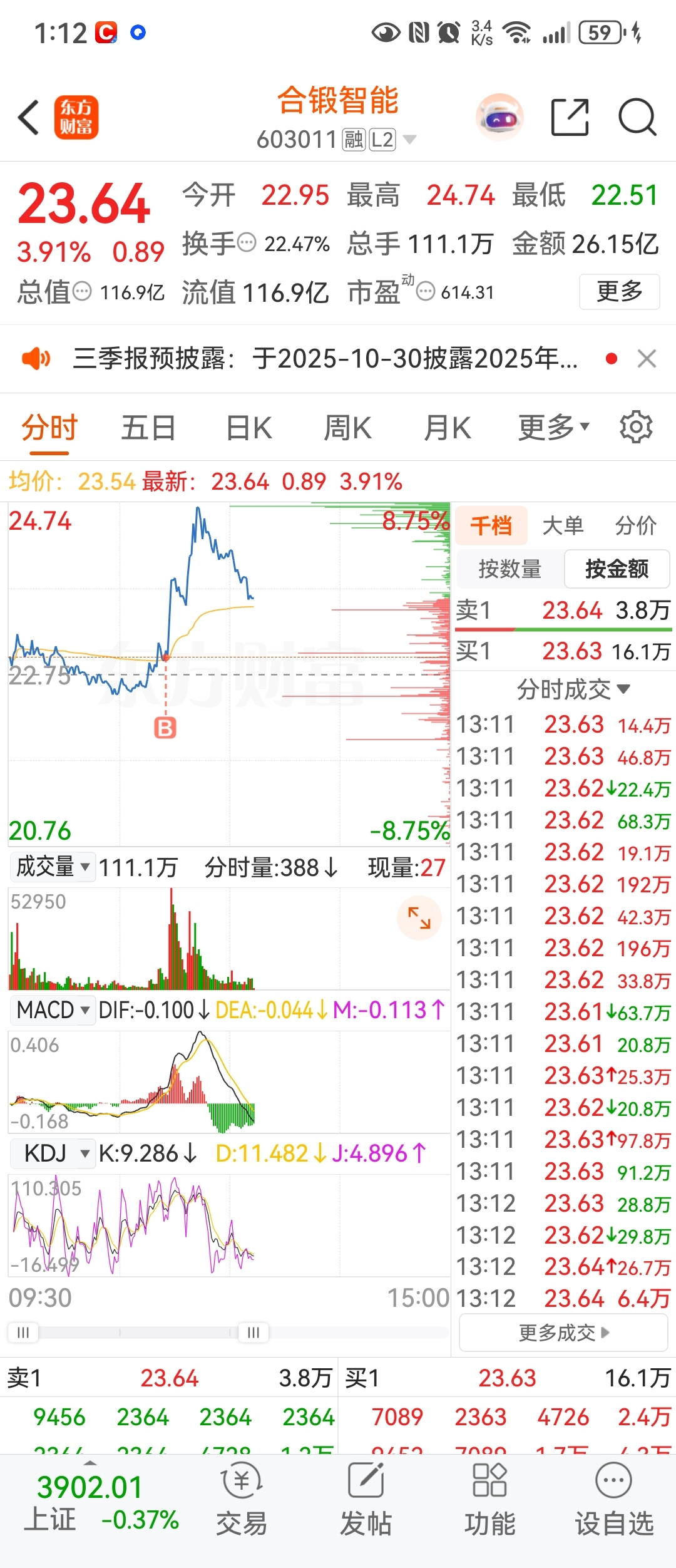 $合锻智能(SH603011)$ 又把我挂山顶了
