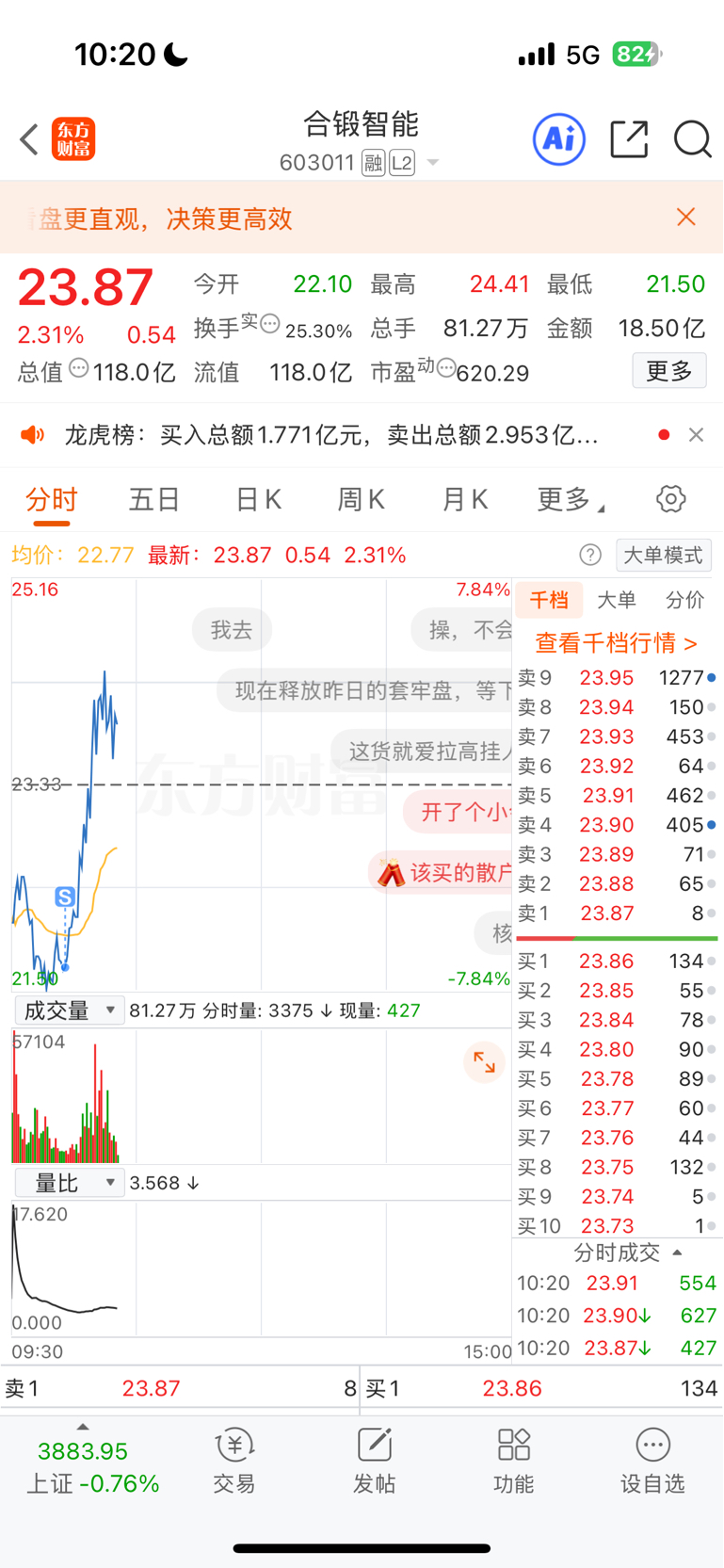 $合锻智能(SH603011)$ 格局了半天割了 我希望今天赚钱的兄弟给我发个红包
