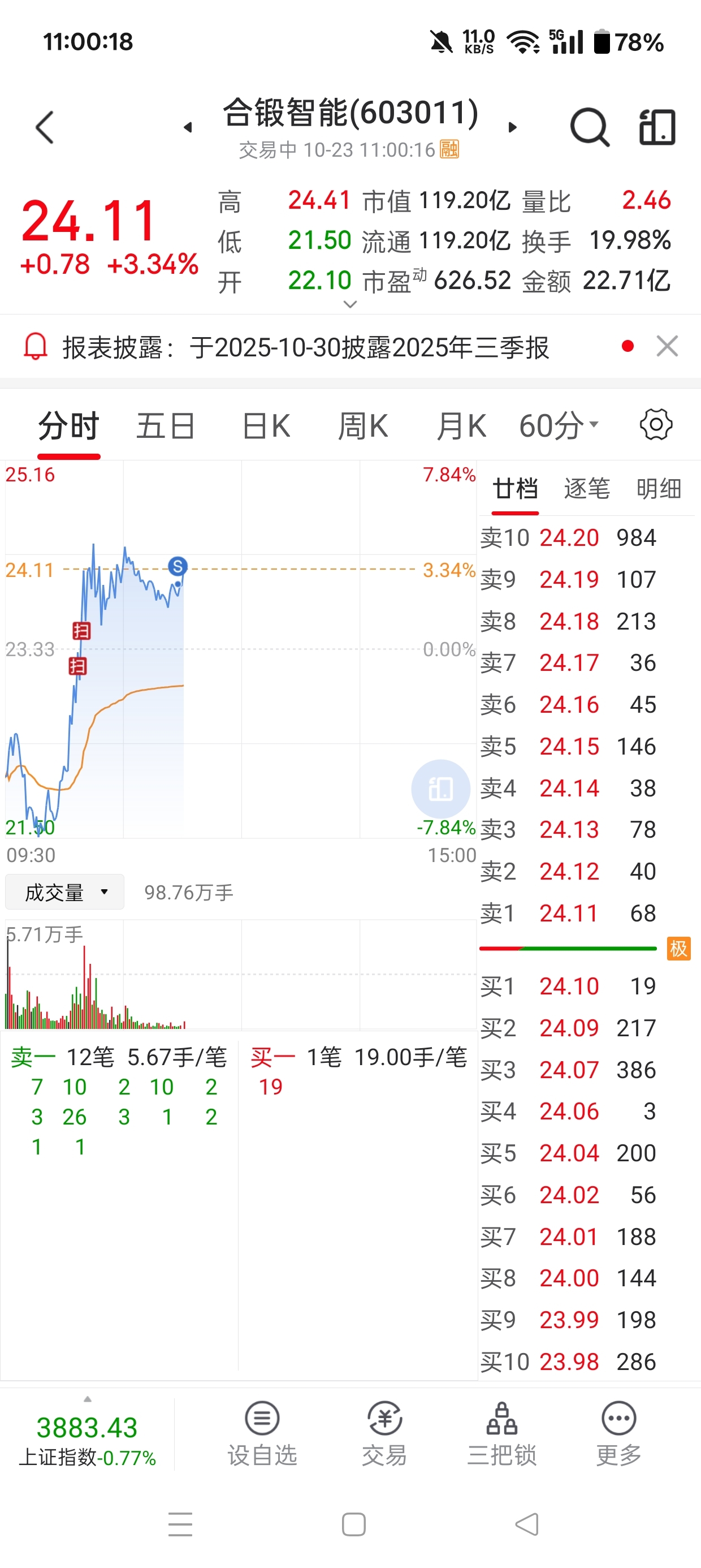$合锻智能(SH603011)$ 还能接回来吗,后悔卖了