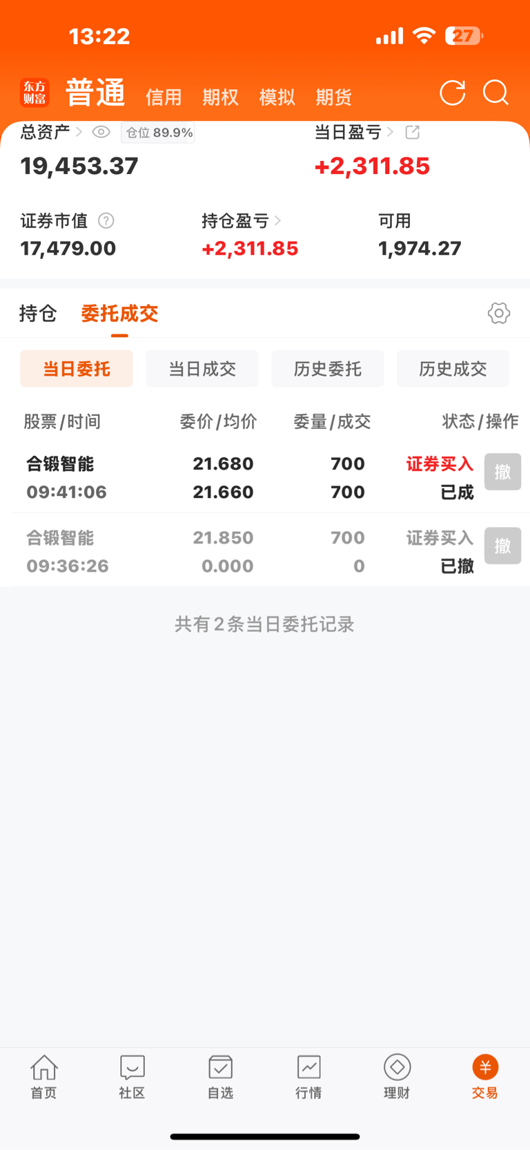 $合锻智能(SH603011)$ 早上21.66买的,刺激