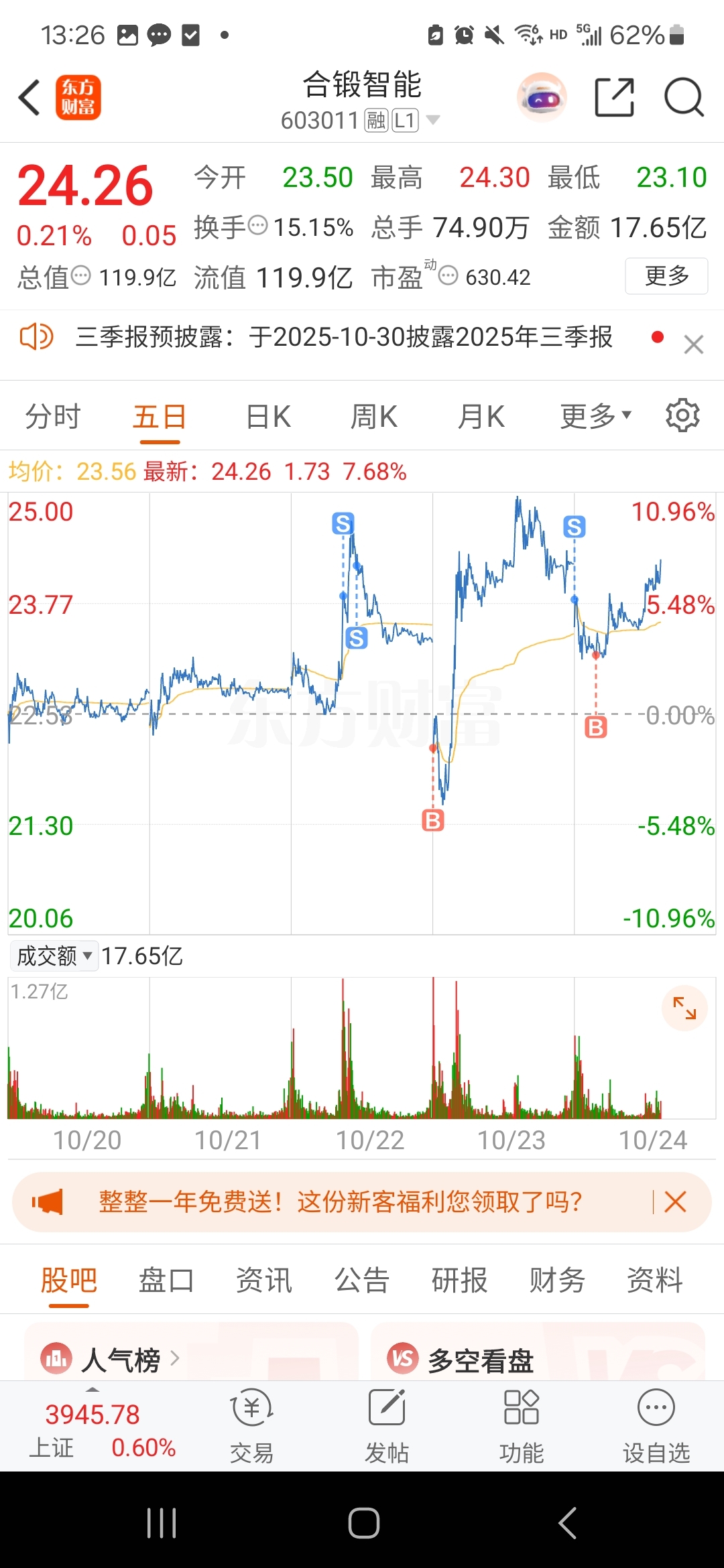 $合锻智能(SH603011)$ 主力这是在发钱?