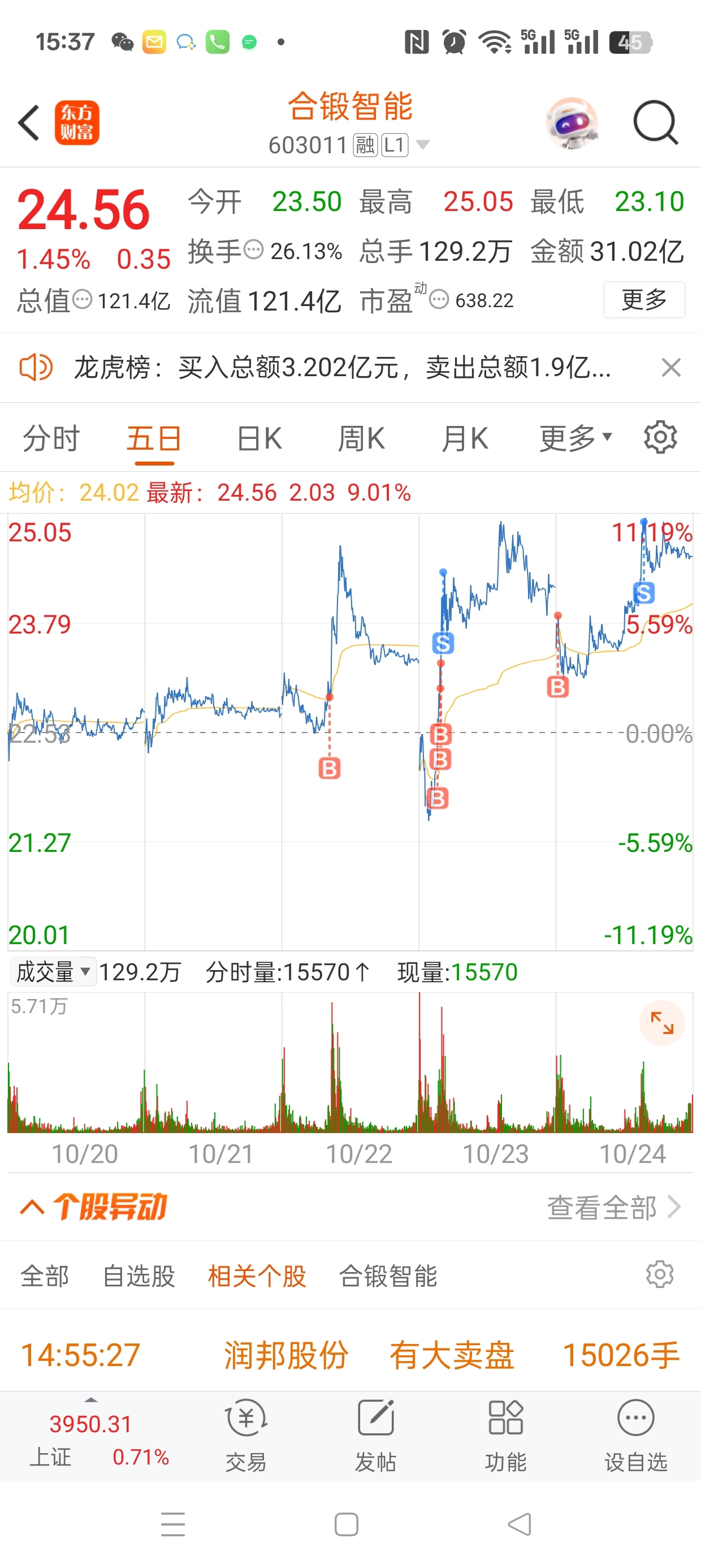 $合锻智能(SH603011)$ 给机会就买,给机会就卖,如此而已