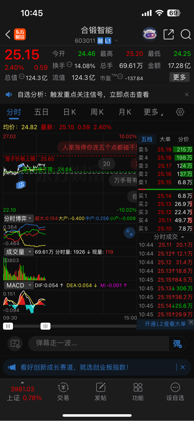$合锻智能(SH603011)$ 明天感觉不妙,走一下
