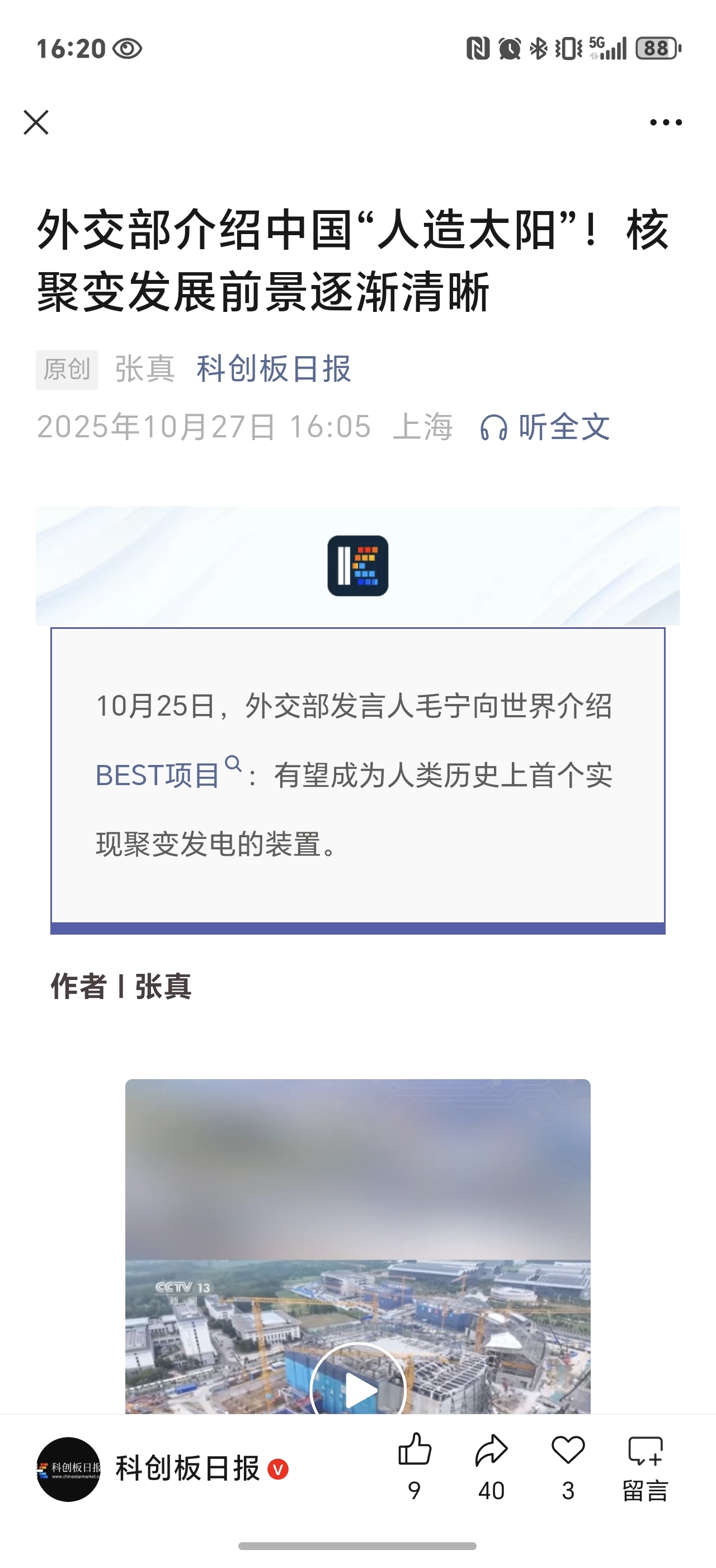外交部介绍中国“人造太阳”!核聚变发展前景逐渐清晰