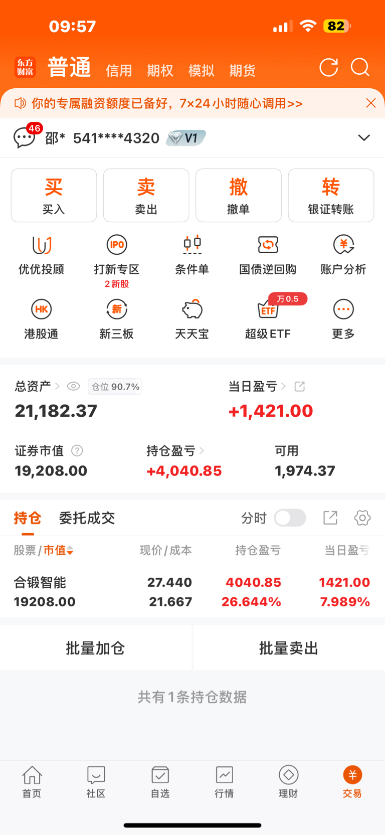 $合锻智能(SH603011)$ 21.6本,