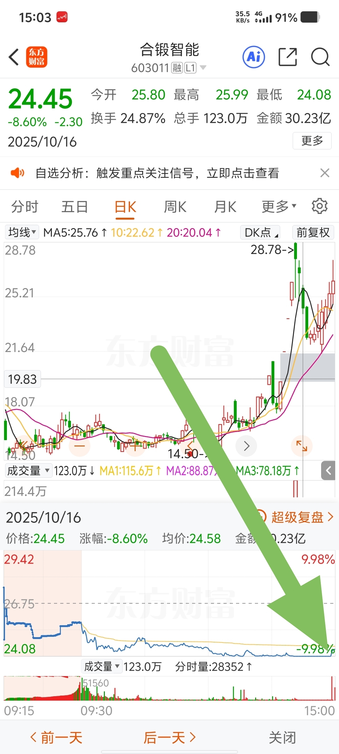 $合锻智能(SH603011)$ 合锻智能前两天也是集合竞价拉升,第二天还是跌停。这个也不会例外。这种手法我见过的太多了。今天开盘不及预期就应该第一时间跑。