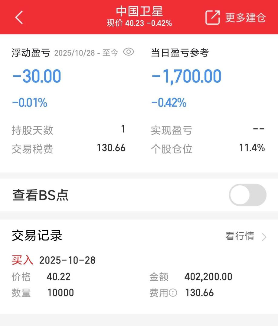 中国卫星昨天有点可惜,军工板块涨了1.07%,它反倒跌了0.42%,最高冲到41.18又掉下来了,但行业逻辑没问题,航天强国战略摆在那,卫星应用的需求越来越大。今天支撑位就是昨天的低点39.9,压力位41.18。拿着的别割肉,这票是慢票,跌破39.5再止损,要是能站上41,鹏哥后面能看到43,到时再出场。