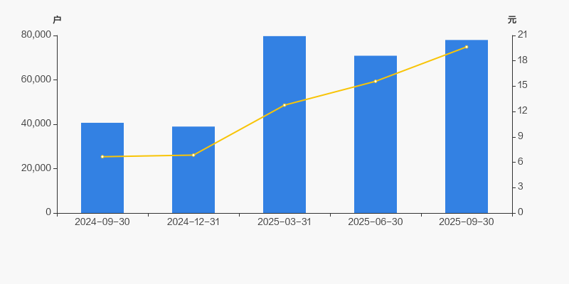 2024年9月30日至今,公司股东户数显著大幅增长,区间涨幅达91.80%。2024年9月30日至2025年9月30日区间股价上涨195.05%。