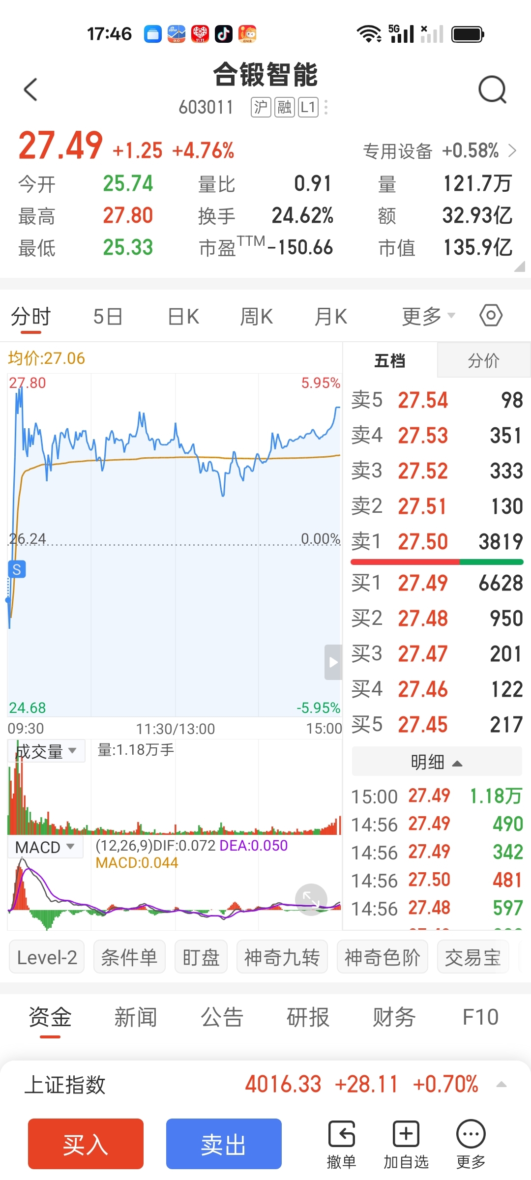 $合锻智能(SH603011)$ 精准卖在最低点。有谁比我惨。