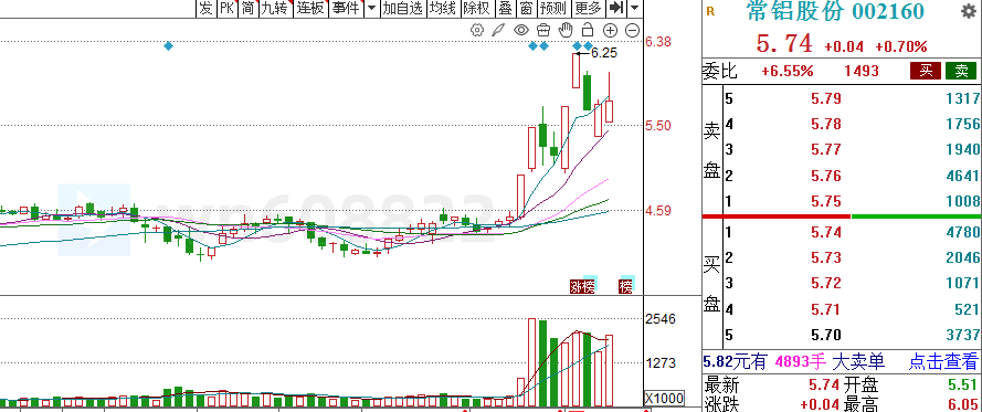 有色板块今天更加不及预期,竟然大幅领跌,但恰恰是这个低落行情,本着抄底的逻辑去了常铝股份,能够逆板块走强说明被市场合力的可能性还是很大的。早评给了两个逻辑,一个是美联储降息之后,有色跟芯片有提价好消息,但今天这些板块,连同降息受益的黄金板块都没涨,只能作为储备利好等轮动。第二是技术上近期有好几个涨停板了,而且形态跟均线系统都是向上的,即便是震荡行情也是保持向上姿势,明天若是能发包掉今天的上影线就有望进入加速浪中。