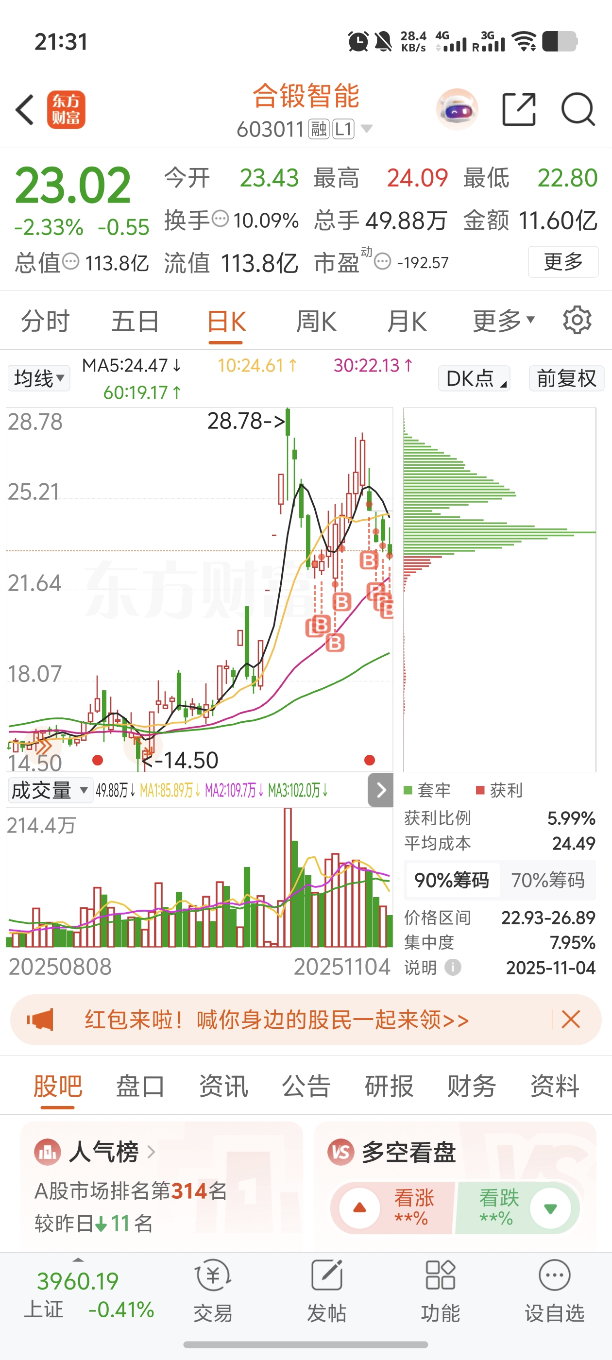 $合锻智能(SH603011)$ 评论区这么多托唱空,看来准备要涨了咋