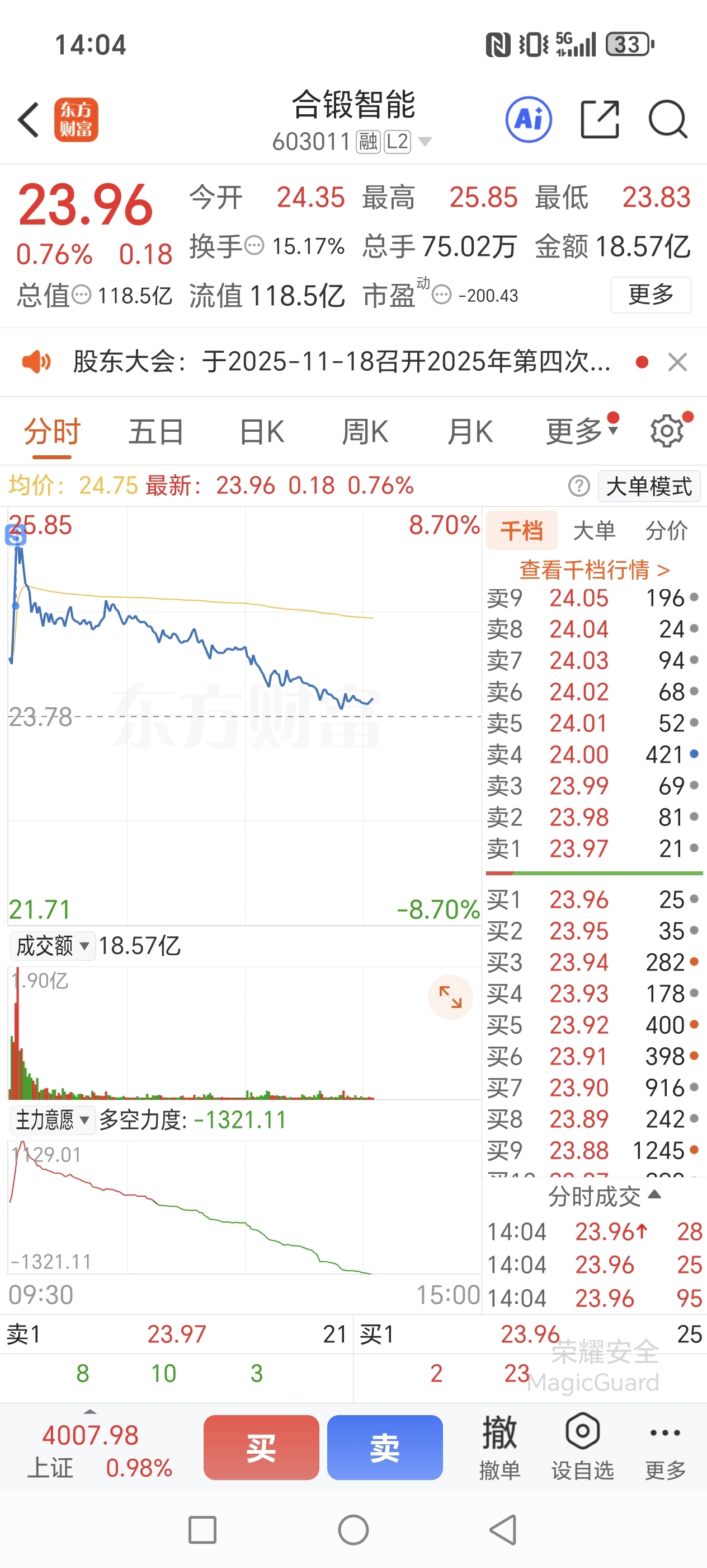 $合锻智能(SH603011)$ 连续三天一模一样,今天尾盘不会再买回来了,明天开始下跌通道