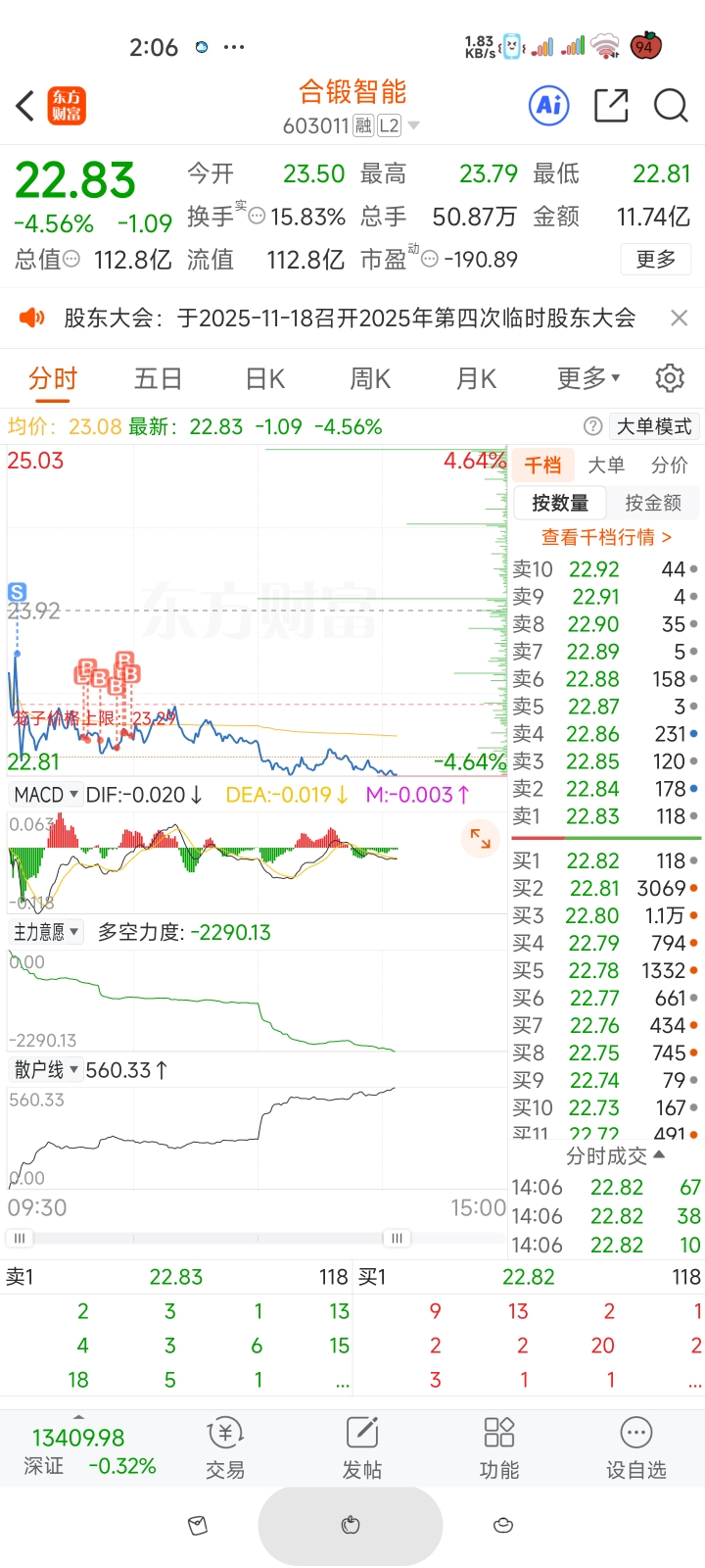 $合锻智能(SH603011)$ 做T做到半山腰……