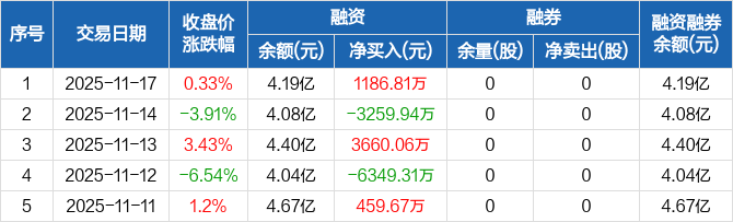 合锻智能:融资净买入1186.81万元,融资余额4.19亿元(11-17)