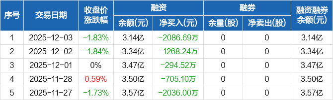 合锻智能:连续6日融资净偿还累计7576.3万元(12-03)