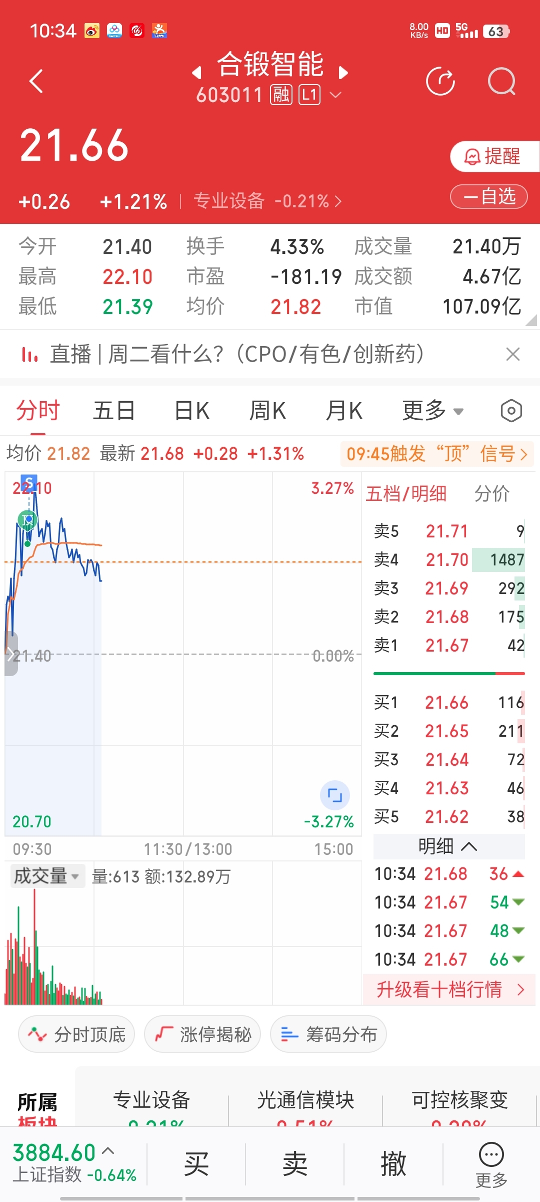 $合锻智能(SH603011)$ 卖了,谢谢主力给回来机会