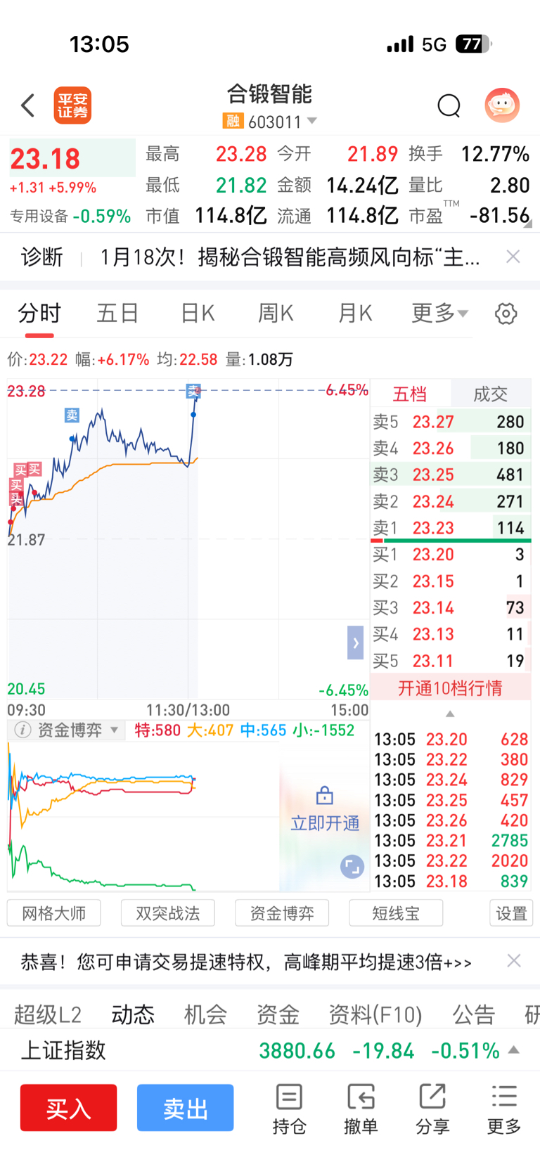 $合锻智能(SH603011)$ t飞了 有本事就涨停