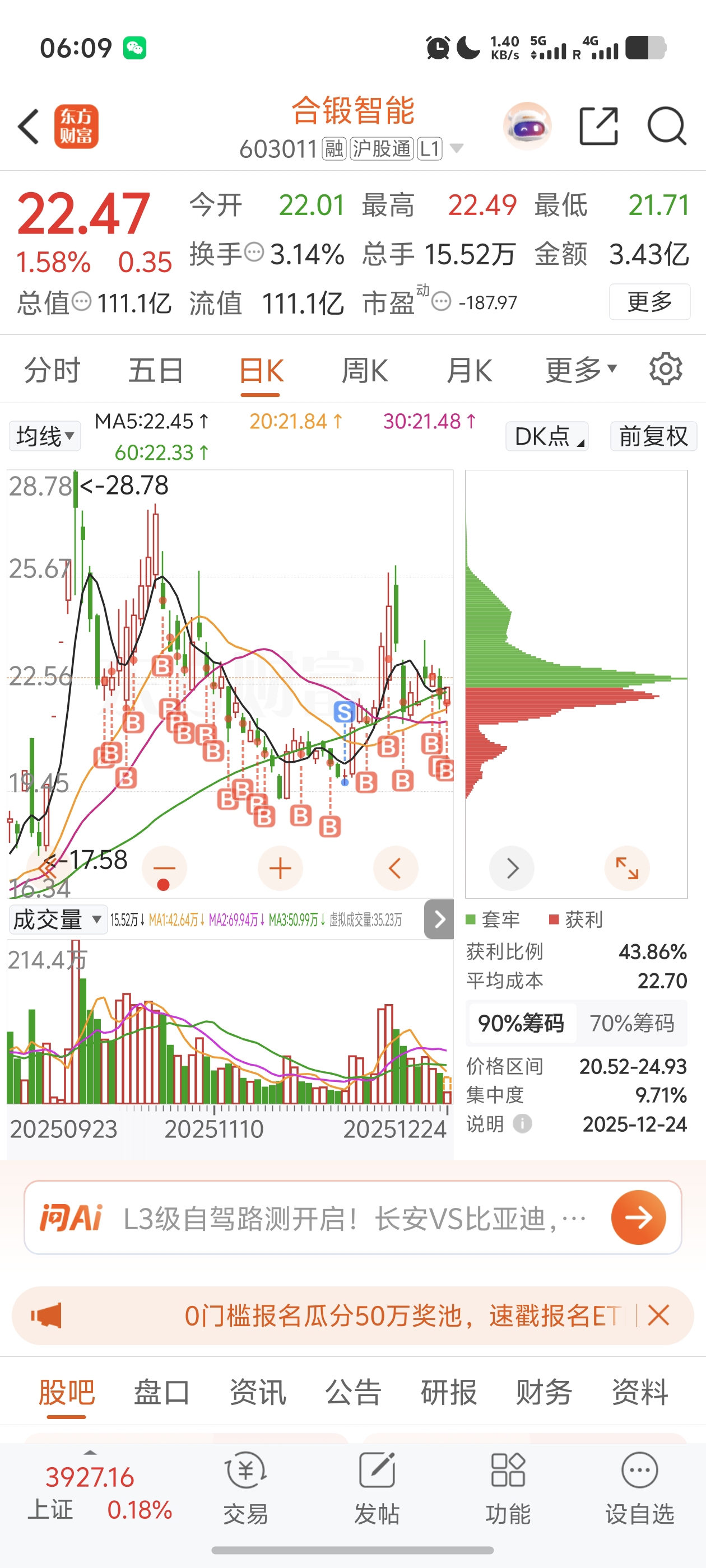 $合锻智能(SH603011)$ 蚂蚁上树,中途卖了200股