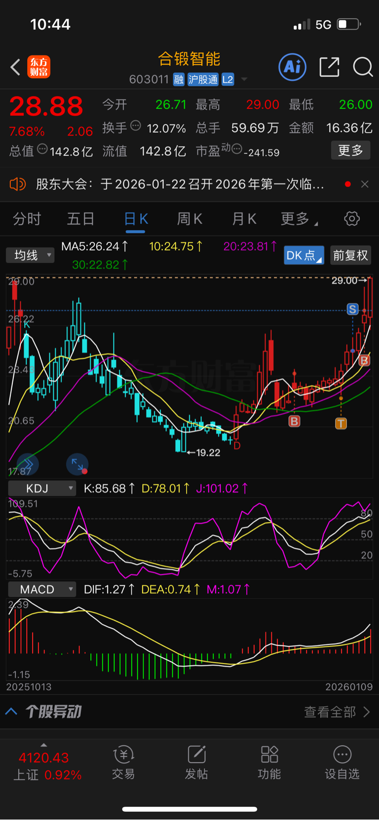 $合锻智能(SH603011)$ 卖飞8个点接回