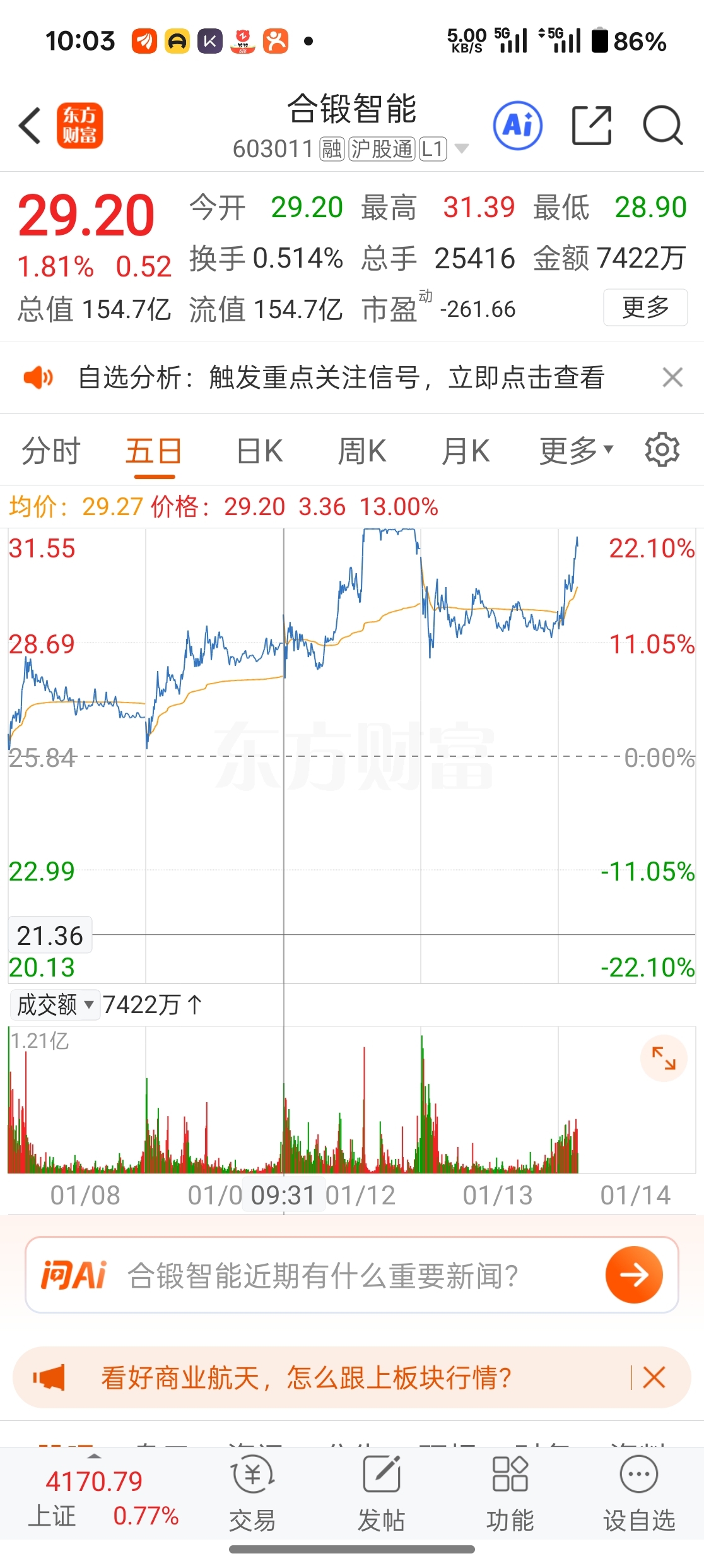 $合锻智能(SH603011)$ 29.20这个庄家特别狗,不用看了涨停虽然昨天卖飞了