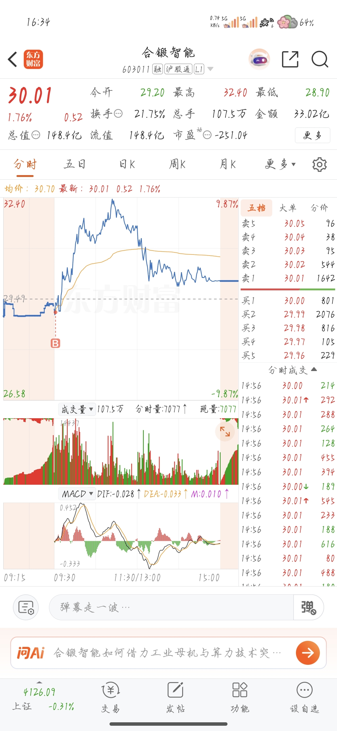 $合锻智能(SH603011)$ 今天后悔死了。肠子悔青了!快涨停又贪了!