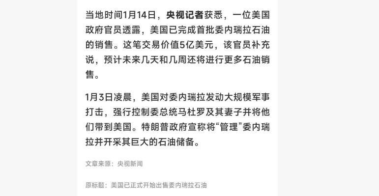 美已经开始出手委内瑞拉的石油了!!!他肯定希望高价出售呀!!!那么他下一步要干什么呢???