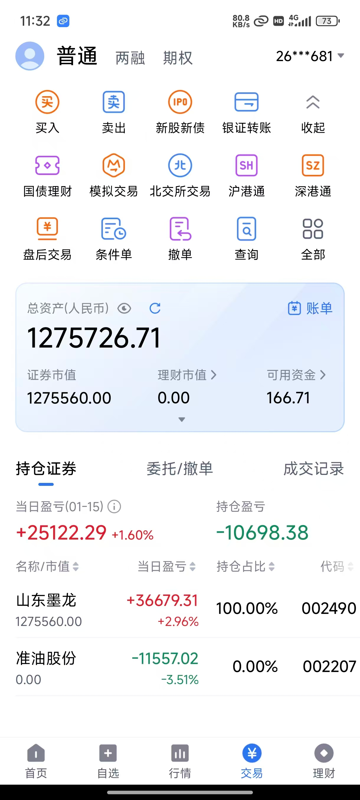 1、开盘清仓准油股份30W,加仓墨龙50W。