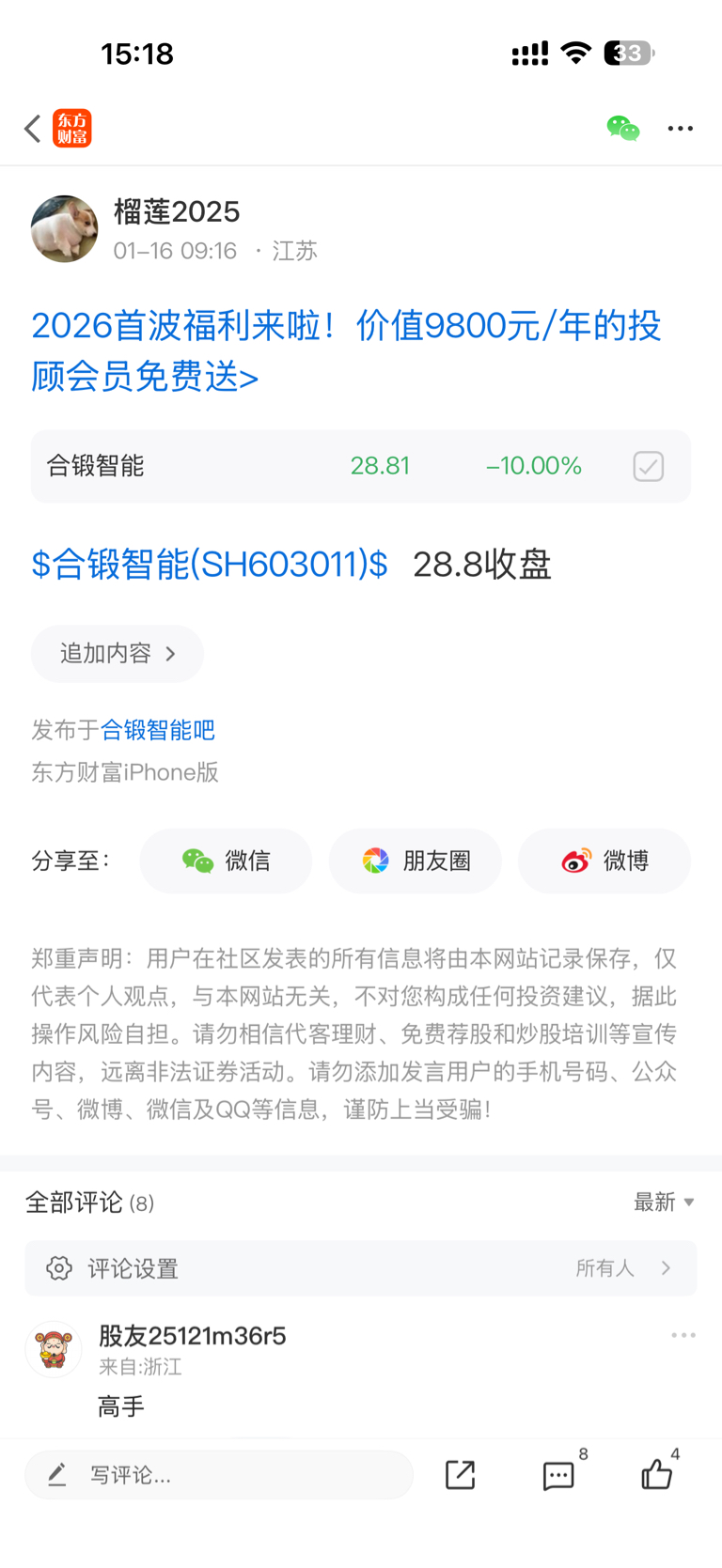 温馨提示: 1.根据《证券法》规定,禁止编造、传播虚假信息或者误导性信息,扰乱证券市场;2.用户在本社区发表的所有资料、言论等仅代表个人观点,与本网站立场无关,不对您构成任何投资建议。用户应基于自己的独立判断,自行决定证券投资并承担相应风险。《东方财富社区管理规定》