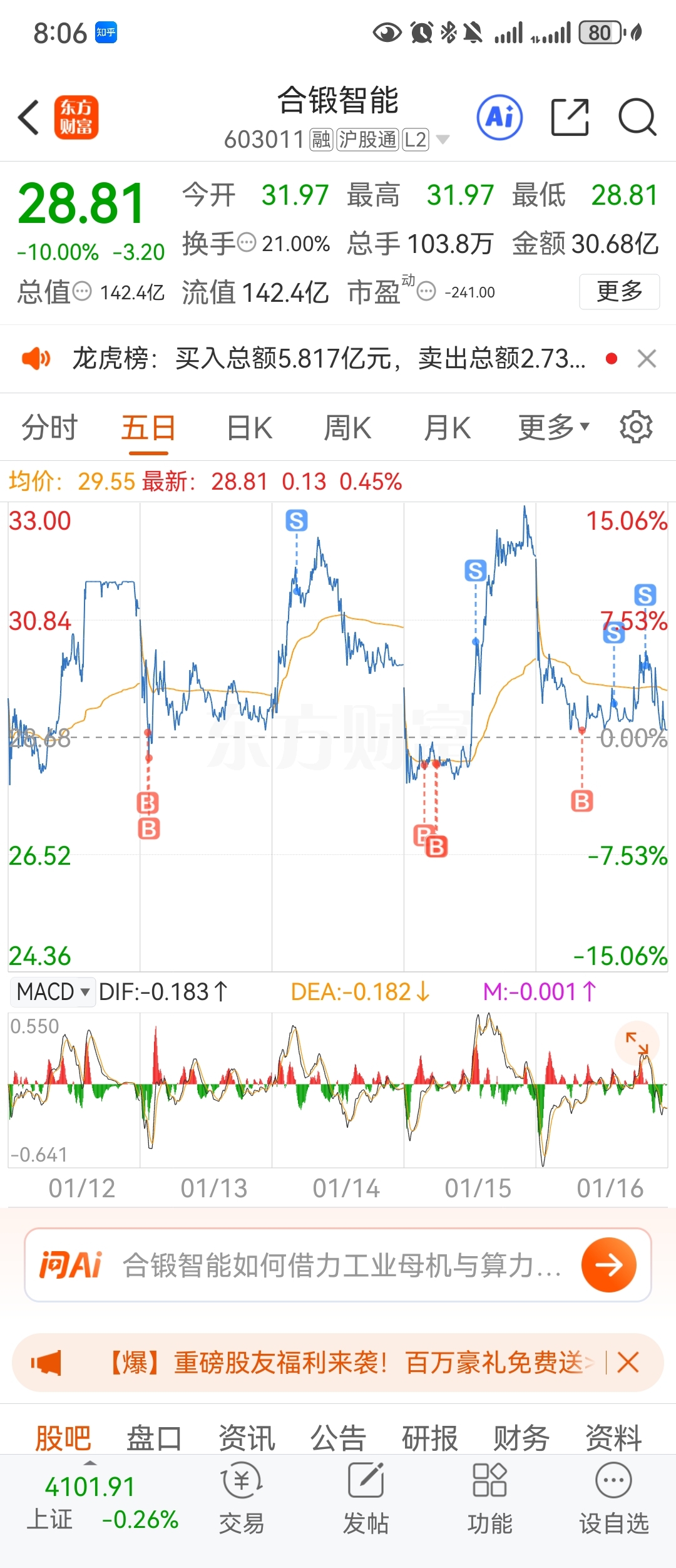 $合锻智能(SH603011)$ #炒股日记#