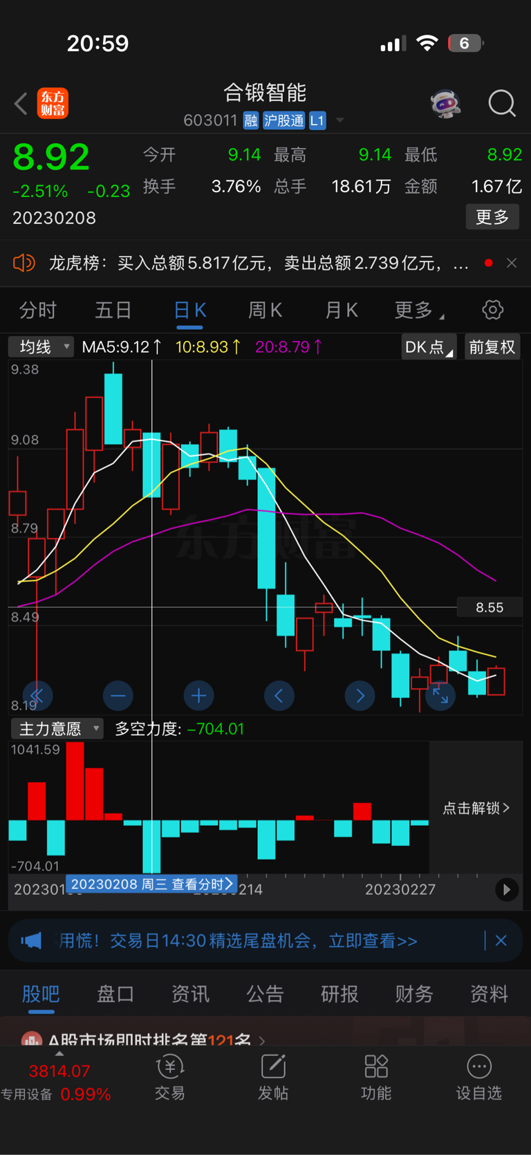 $合锻智能(SH603011)$ 不要慌 周一最高点32.01