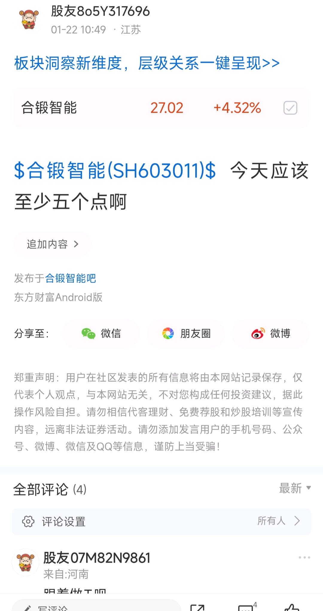 温馨提示: 1.根据《证券法》规定,禁止编造、传播虚假信息或者误导性信息,扰乱证券市场;2.用户在本社区发表的所有资料、言论等仅代表个人观点,与本网站立场无关,不对您构成任何投资建议。用户应基于自己的独立判断,自行决定证券投资并承担相应风险。《东方财富社区管理规定》