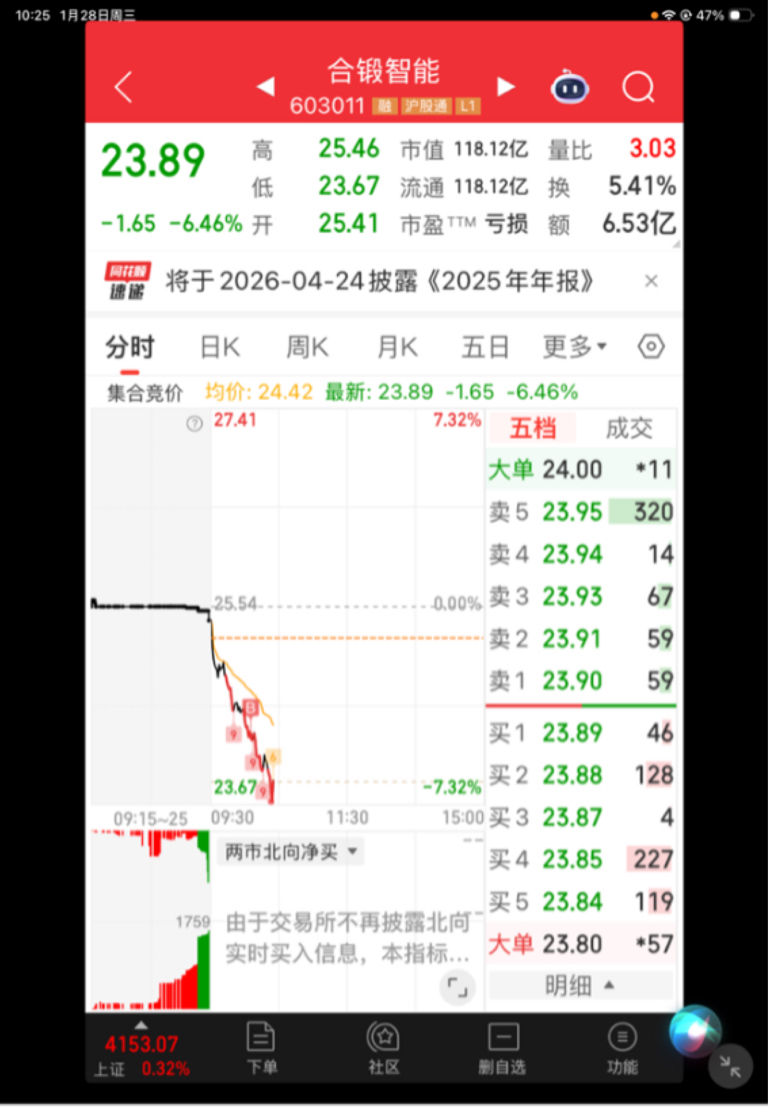 $合锻智能(SH603011)$ 越跌越买!