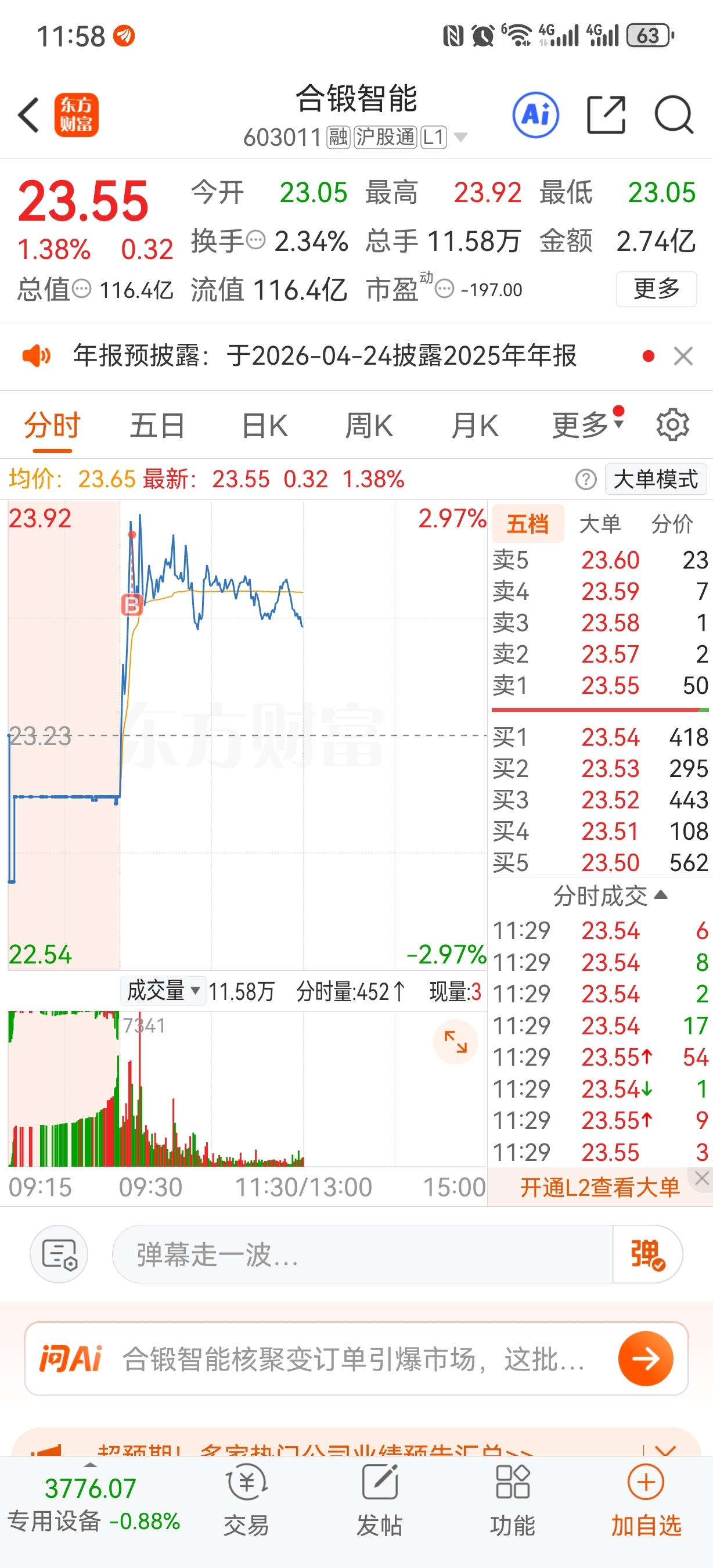 $合锻智能(SH603011)$ 如果我不买 应该不会跌的 我每次买啥就跌啥