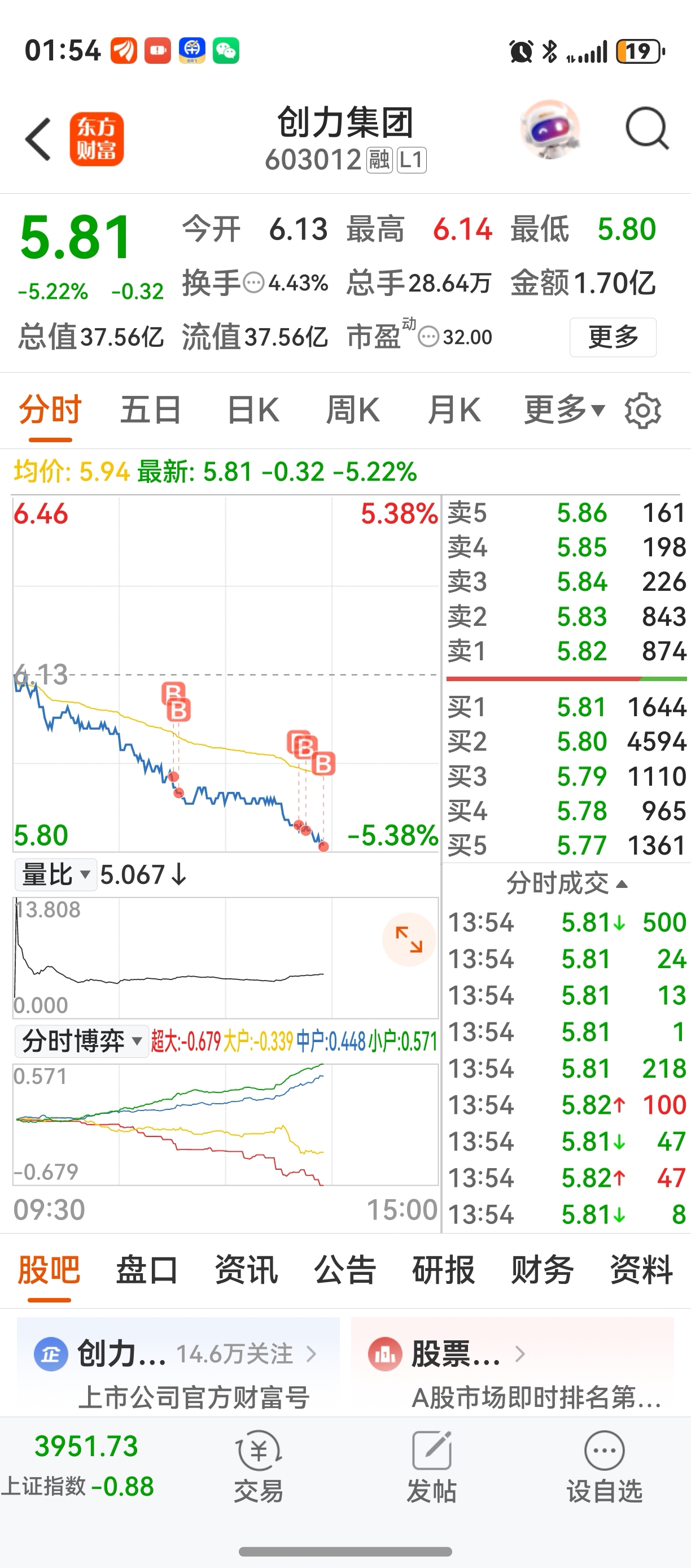 $创力集团(SH603012)$  哈哈今天买到5.80为止,下周再战!