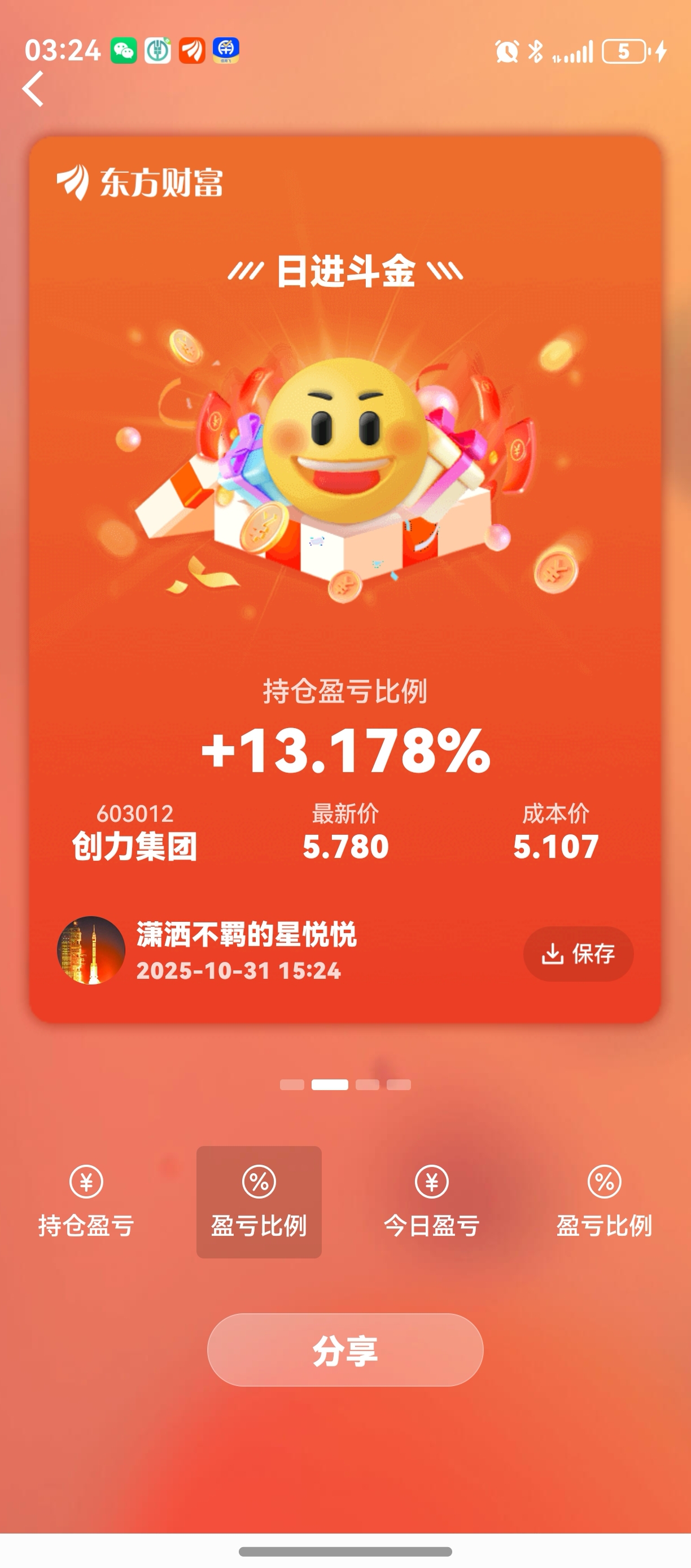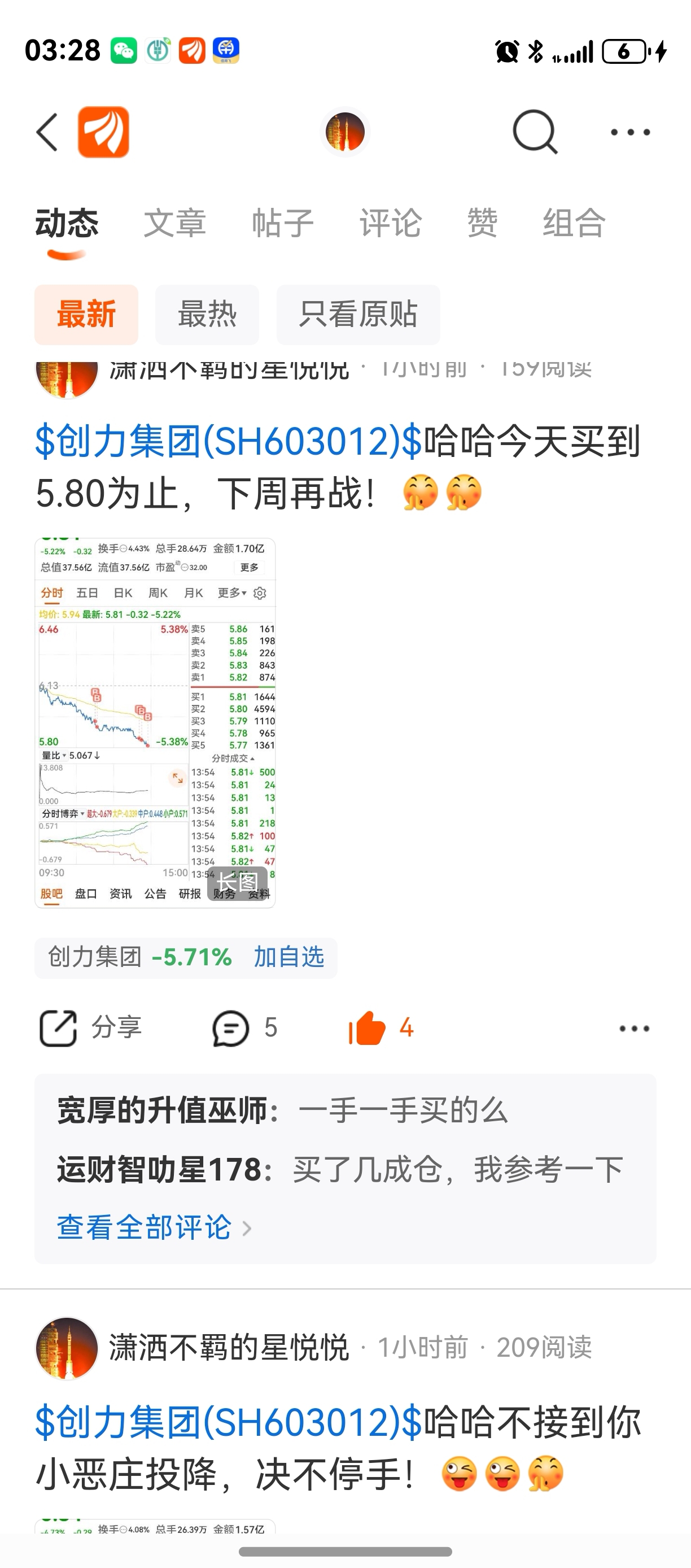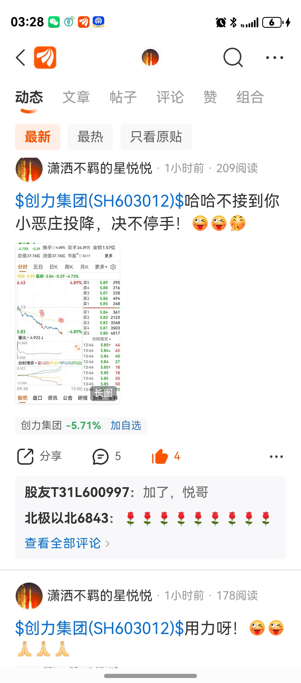 $创力集团(SH603012)$  哈哈哈兄弟们周未愉快哦!下周就不公开操作了,正如前几天我在万达信息6.70左右一样,目的只是为了给兄弟们持股打气坚守,不要让小老庄给砸出来了,坚定信心(4千点才是中小票的春天来了,市场高低切换中)坚持必定胜利!