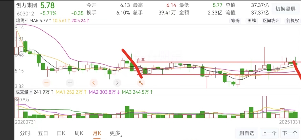 $创力集团(SH603012)$ 最近好好复盘了一下这个票,以前一直觉得没啥大风险,最近看了一下大结构,感觉到4.9的概率非常大啊,甚至到4.4也不是没有可能,纯属技术讨论,欢迎各路高手讨论,骂人的就是骂自己哈,照着镜子码就好了
