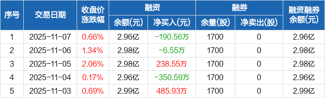 创力集团:融资净偿还190.56万元,融资余额2.96亿元(11-07)