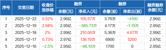 创力集团:融资净买入105.57万元,融资余额2.96亿元(12-22)