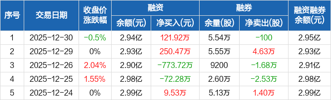 创力集团:融资净买入121.92万元,融资余额2.94亿元(12-30)