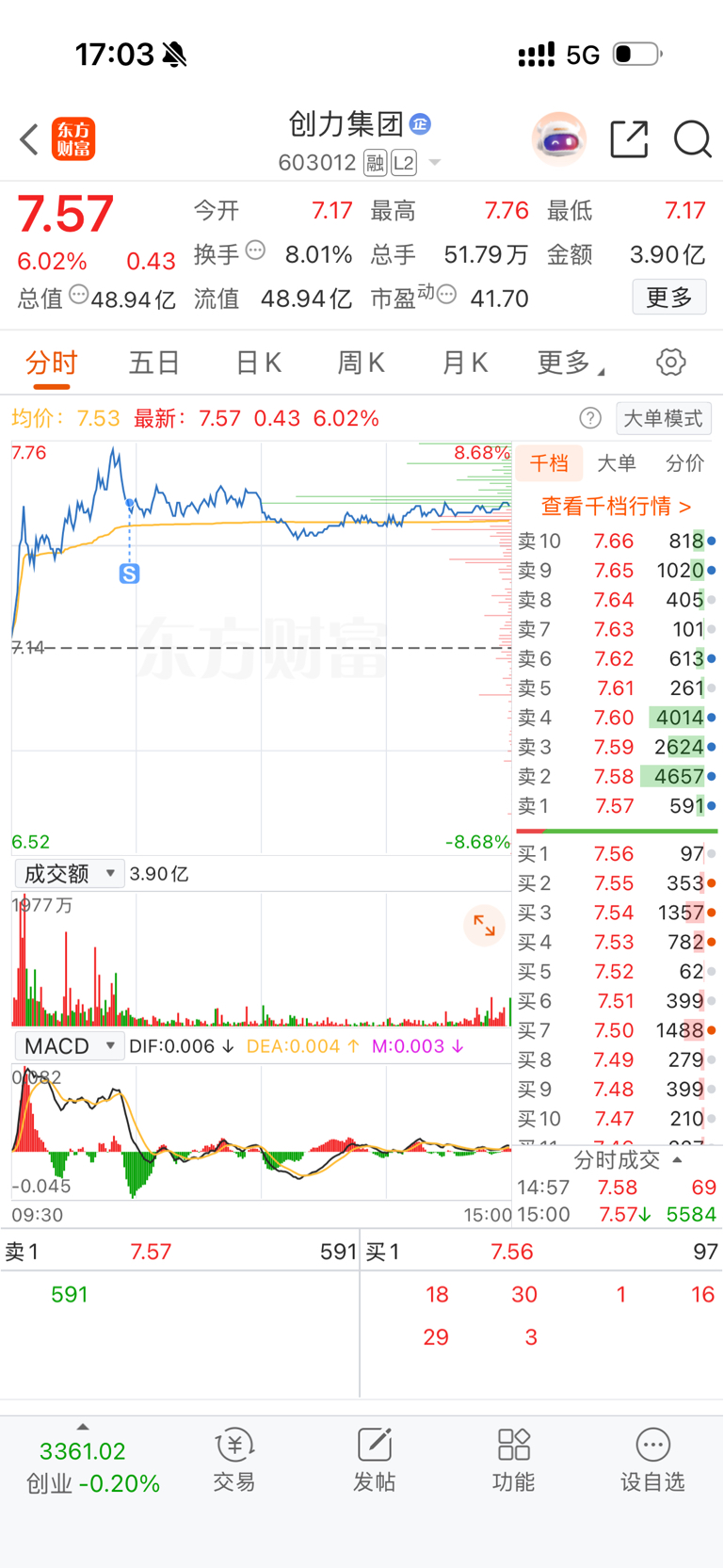 $创力集团(SH603012)$ 清了,估计下周一要拍大腿了