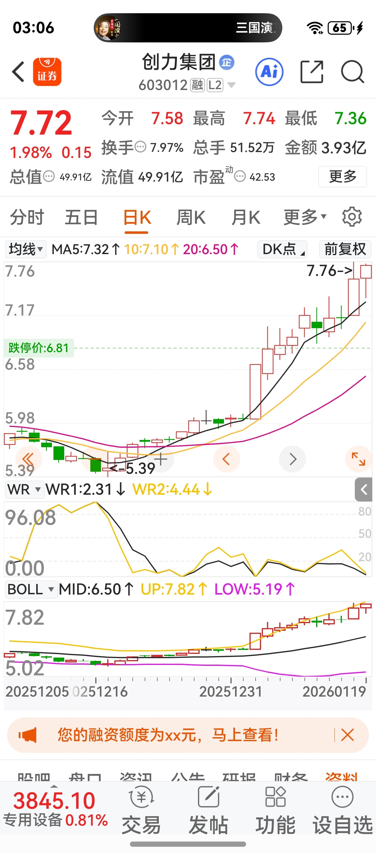 $创力集团(SH603012)$ 哈哈本周兄弟们可以先出掉二成仓位了!(7.88-8.26)