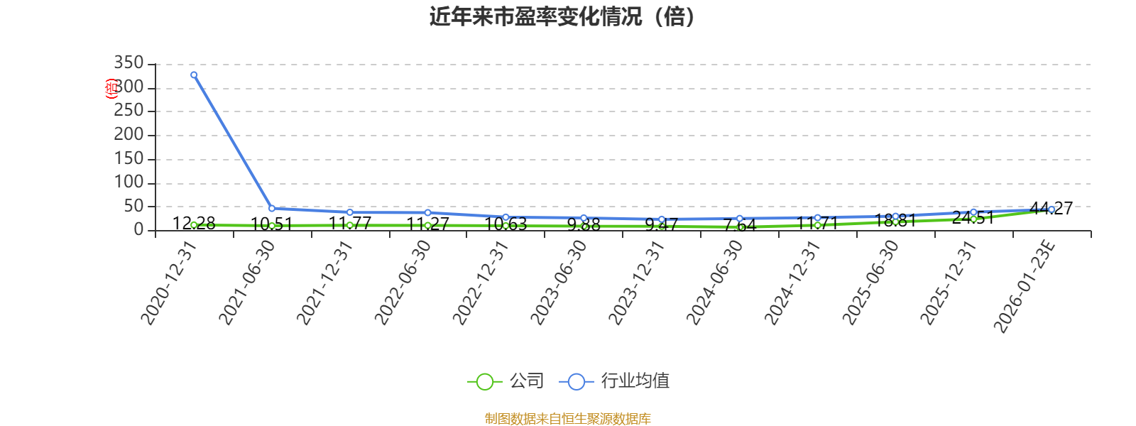 以本次披露业绩预告均值计算,公司近年市盈率(TTM)图如下所示: