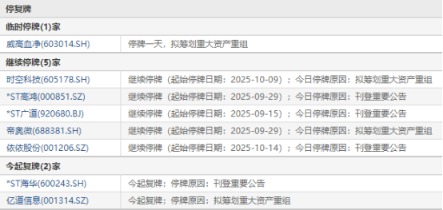 上证报中国证券网讯 10月20日,1家公司临停:威高血净,2家公司复牌:*ST海华、亿道信息。