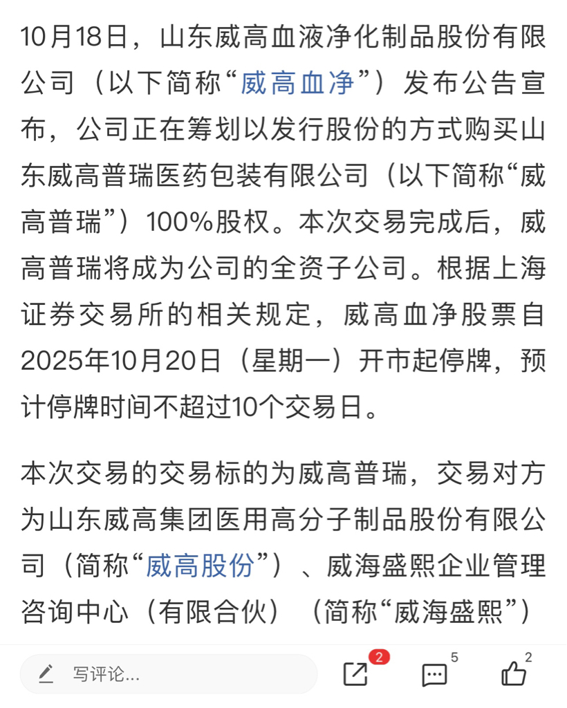 $威高血净(SH603014)$ 用股民的钱收购 自己一分不掏,还要趁机解禁。玩得真溜啊!