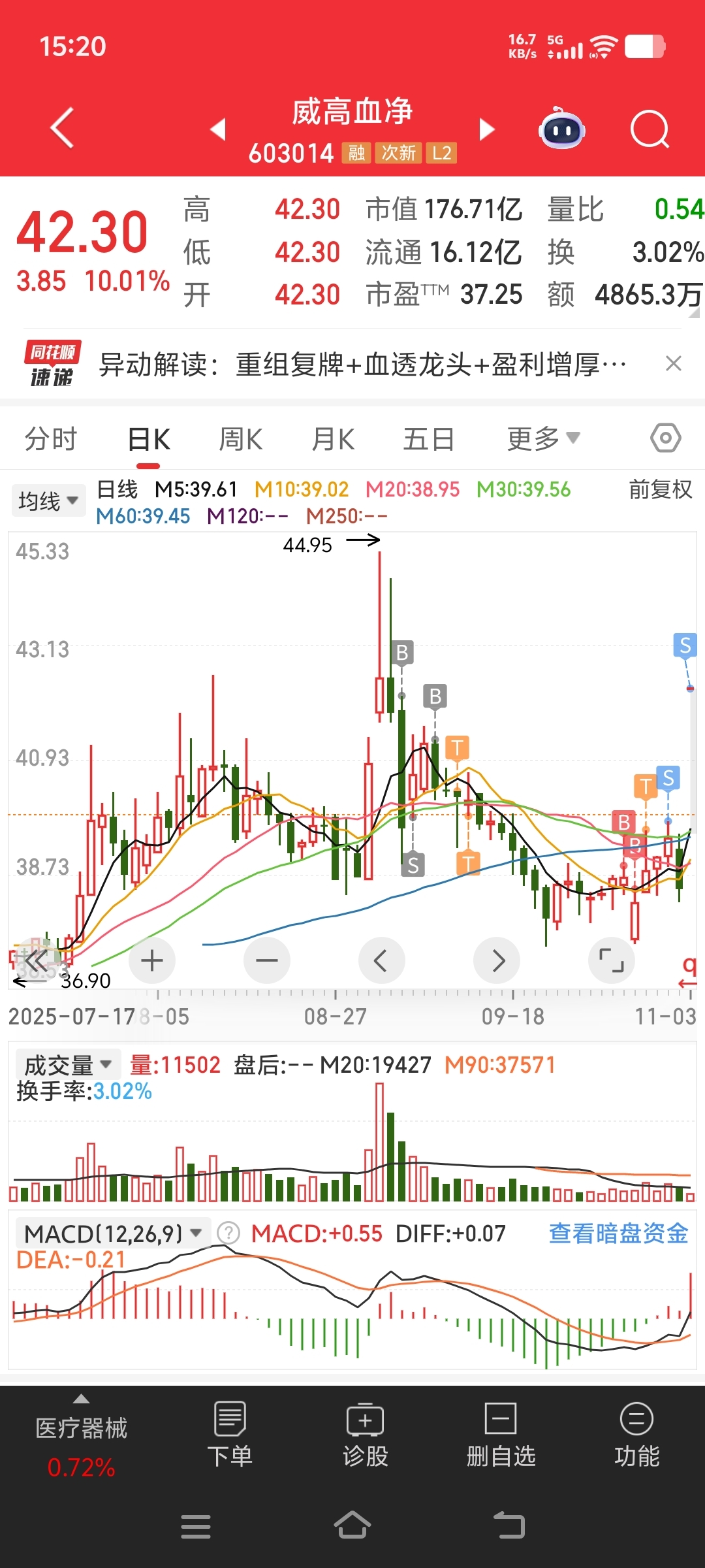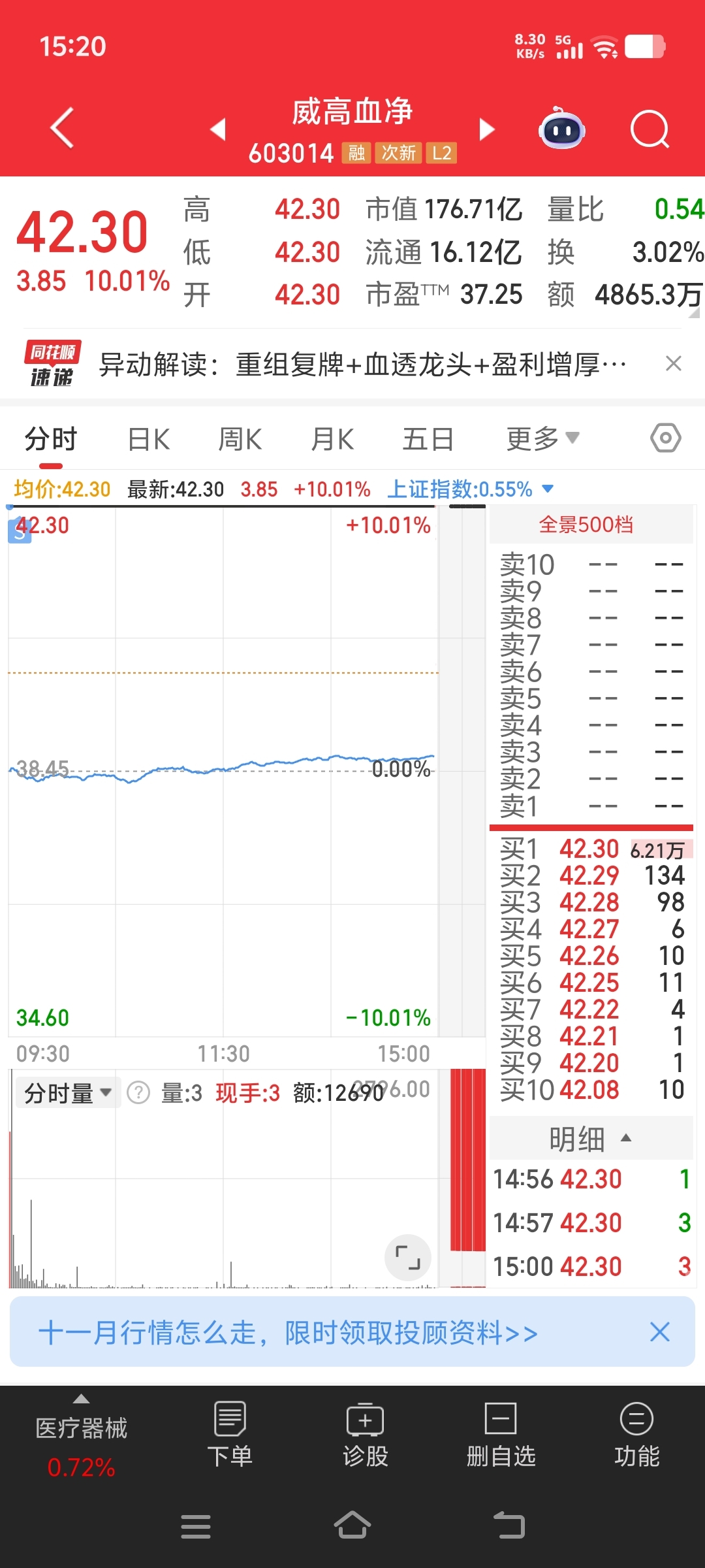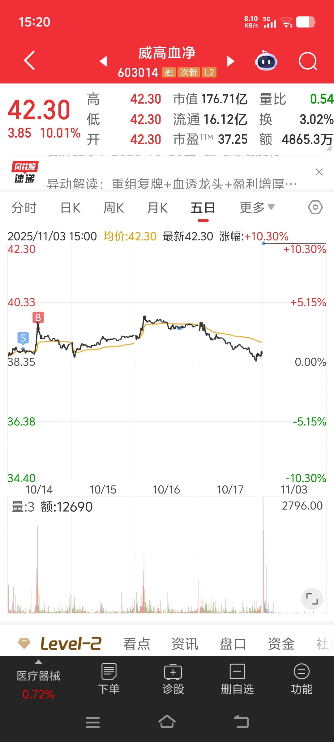 威高血净仓位本来就不重今天涨停就都卖了自己买自己旗下的公司刚上市就弄这事儿