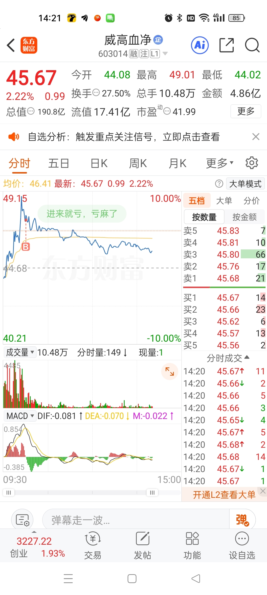 $威高血净(SH603014)$ 我就买了十多手,就要套我几个点
